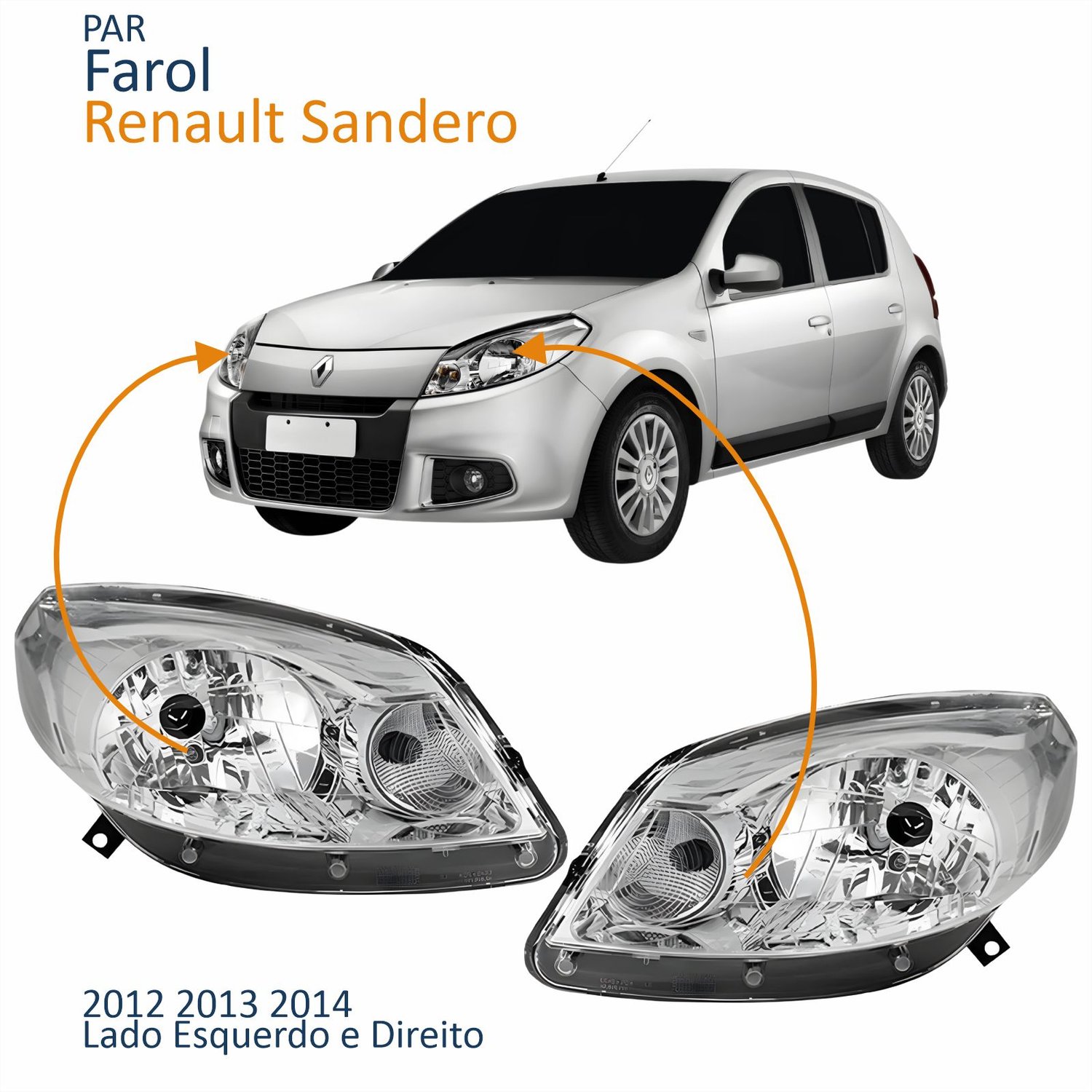 Par Farol Principal Renault Sandero 2012 2013 2014 Máscara Cromada