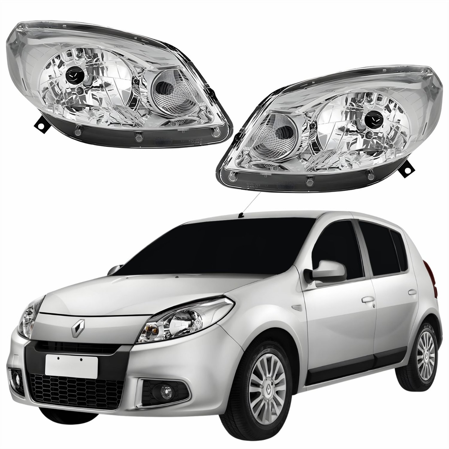 Farol Principal Renault Sandero 2012 2013 2014 Máscara Cromada Lado Esquerdo MotoristaLado: ÚnicoFarol Principal Renault Sandero 2012 2013 2014 Máscara Cromada Lado Direito PassageiroLado: Único