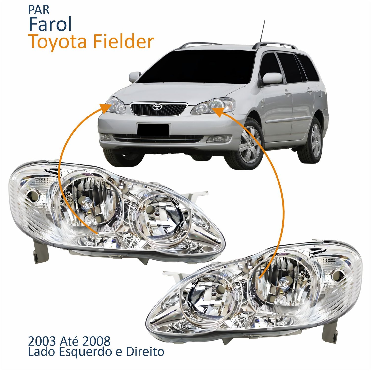 Par Farol Principal Toyota Fielder 2003 Até 2008 Máscara Cromada Com Lente Frisada