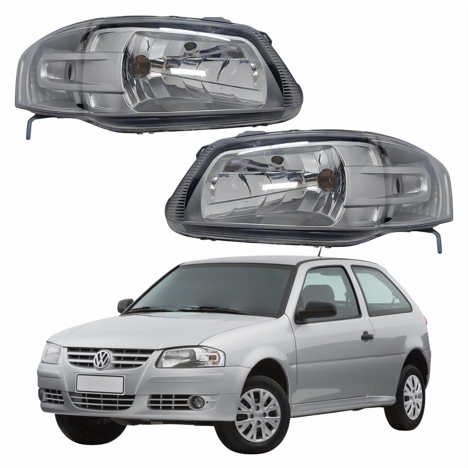 Par Farol Principal Vw Gol G4 2005 Até 2008 Máscara Cinza