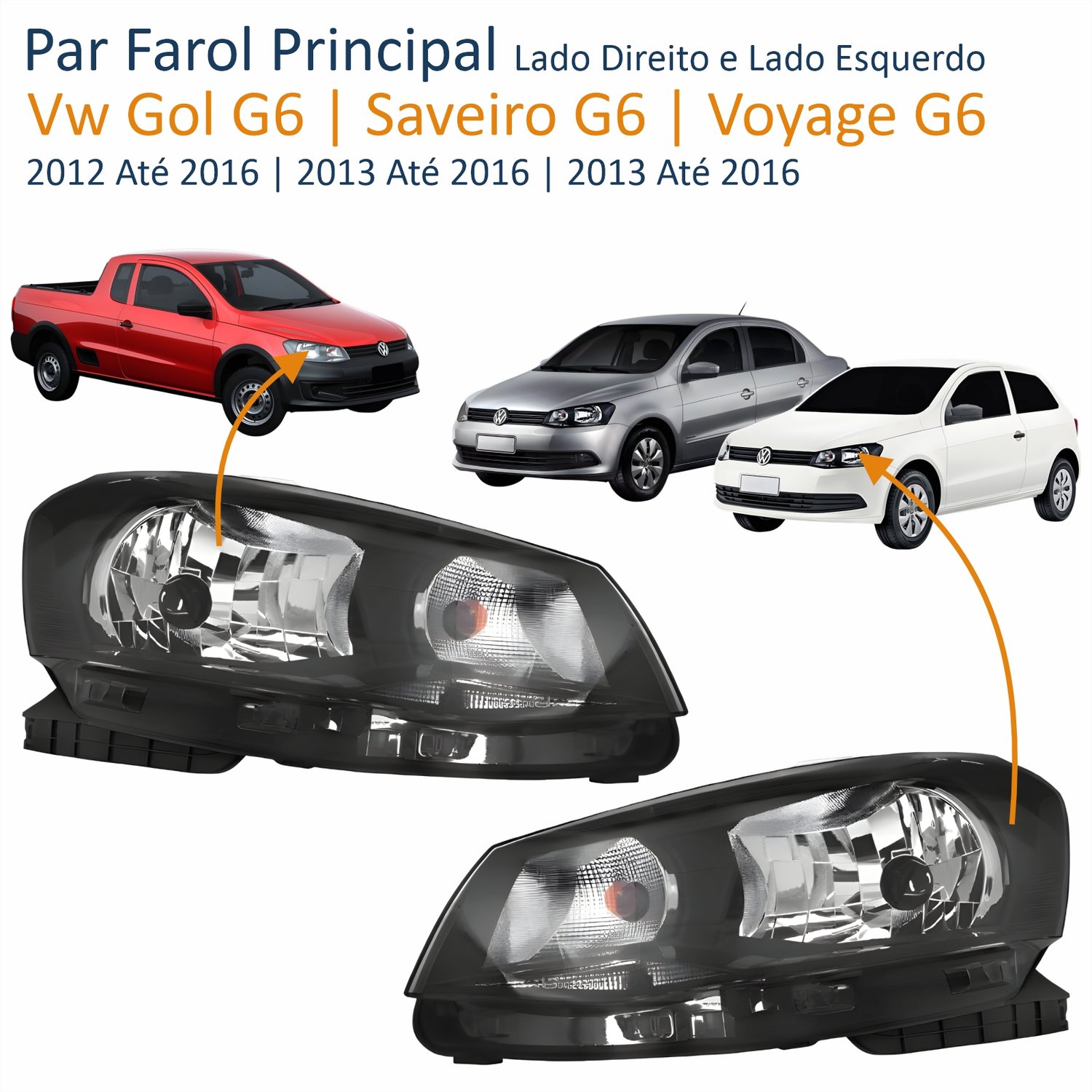 Farol Principal Vw Gol G6 2012 Até 2016 Saveiro Voyage G6 2013 Até 2016 Foco Simples Lado Direito PassageiroLado: ÚnicoFarol Principal Vw Gol G6 2012 Até 2016 Saveiro Voyage G6 2013 Até 2016 Foco Simples Lado Esquerdo MotoristaLado: Único
