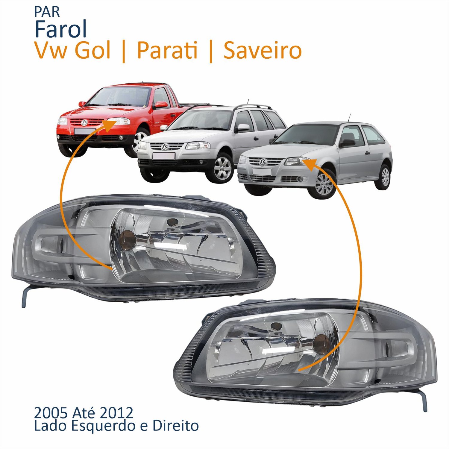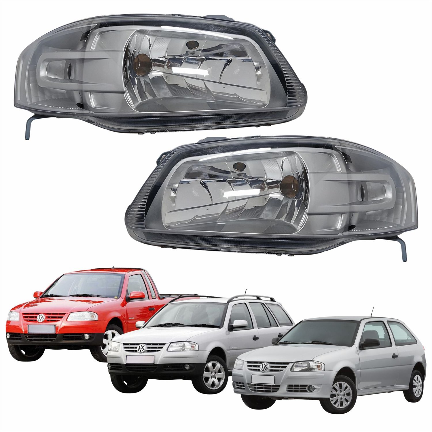 Par Farol Principal Vw Gol Parati Saveiro 2005 Até 2012 Máscara Cinza