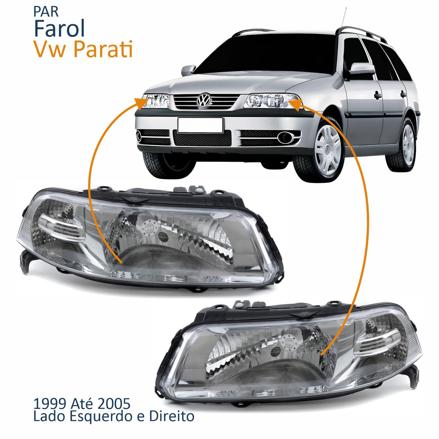 Par Farol Principal Vw Parati 1999 Até 2005 Foco Simples Máscara Cromada