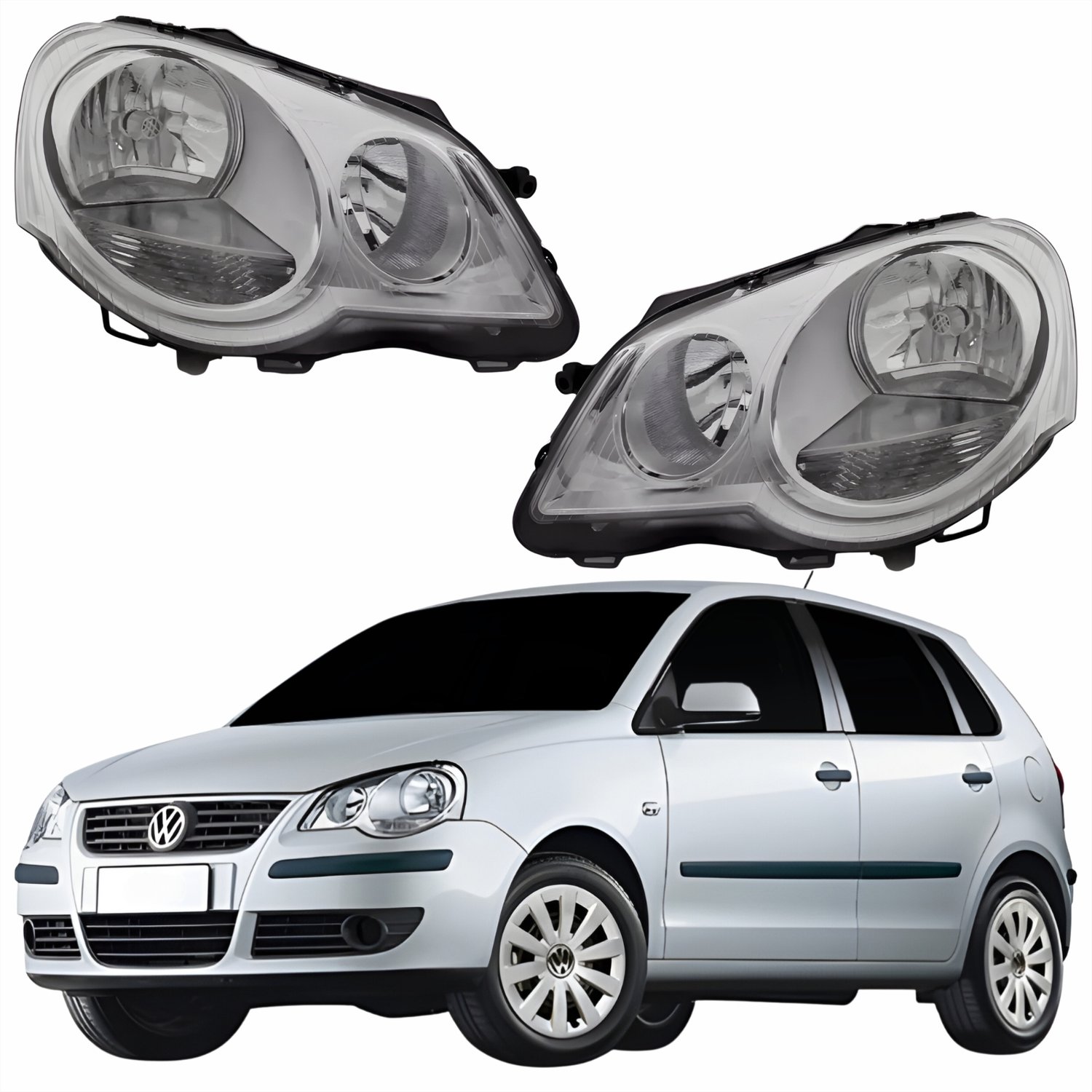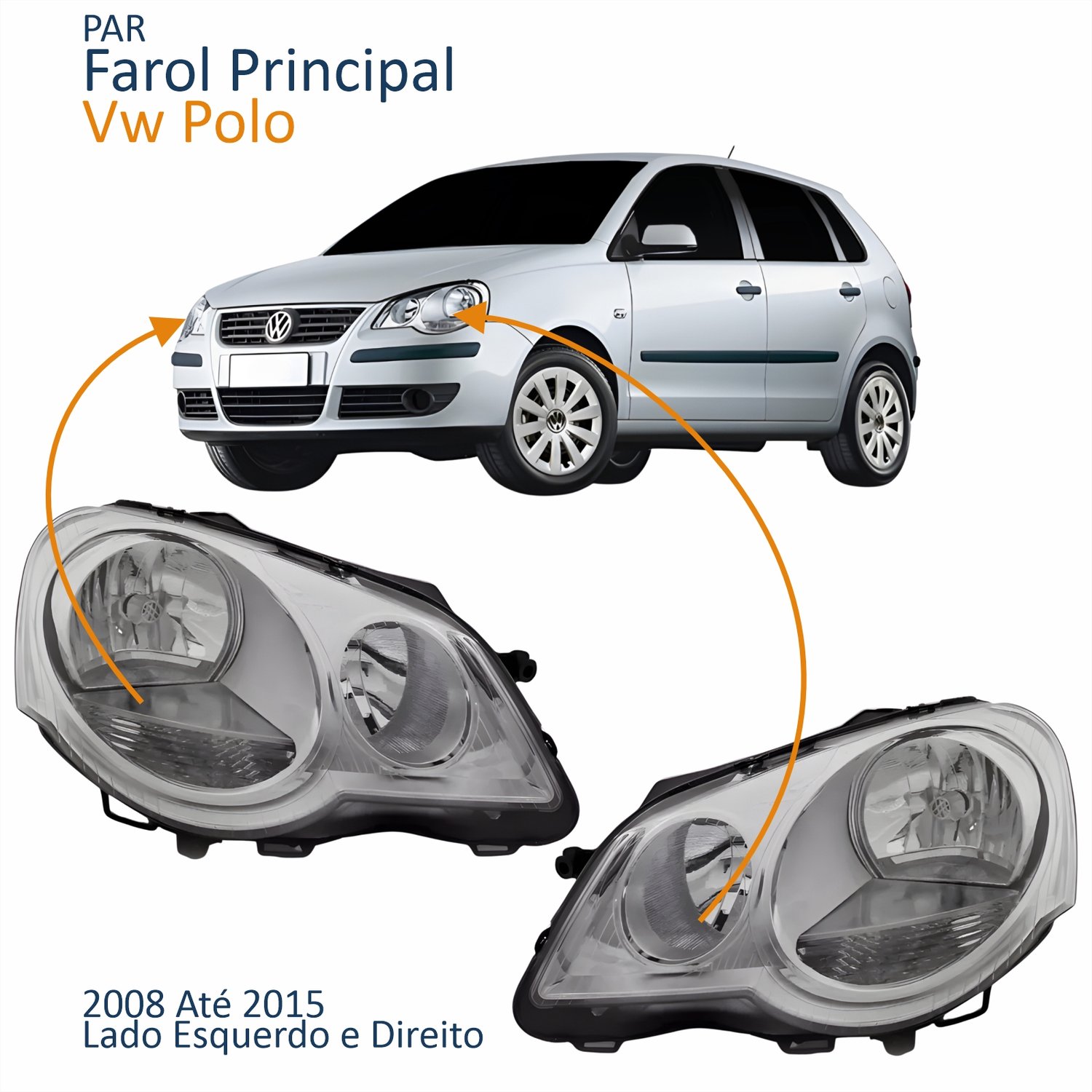 Par Farol Principal Vw Polo 2008 Até 2015 Máscara Cromomix