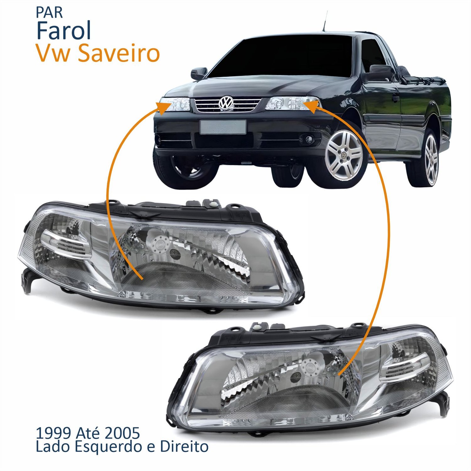 Par Farol Principal Vw Saveiro 1999 Até 2005 Foco Simples Máscara Cromada