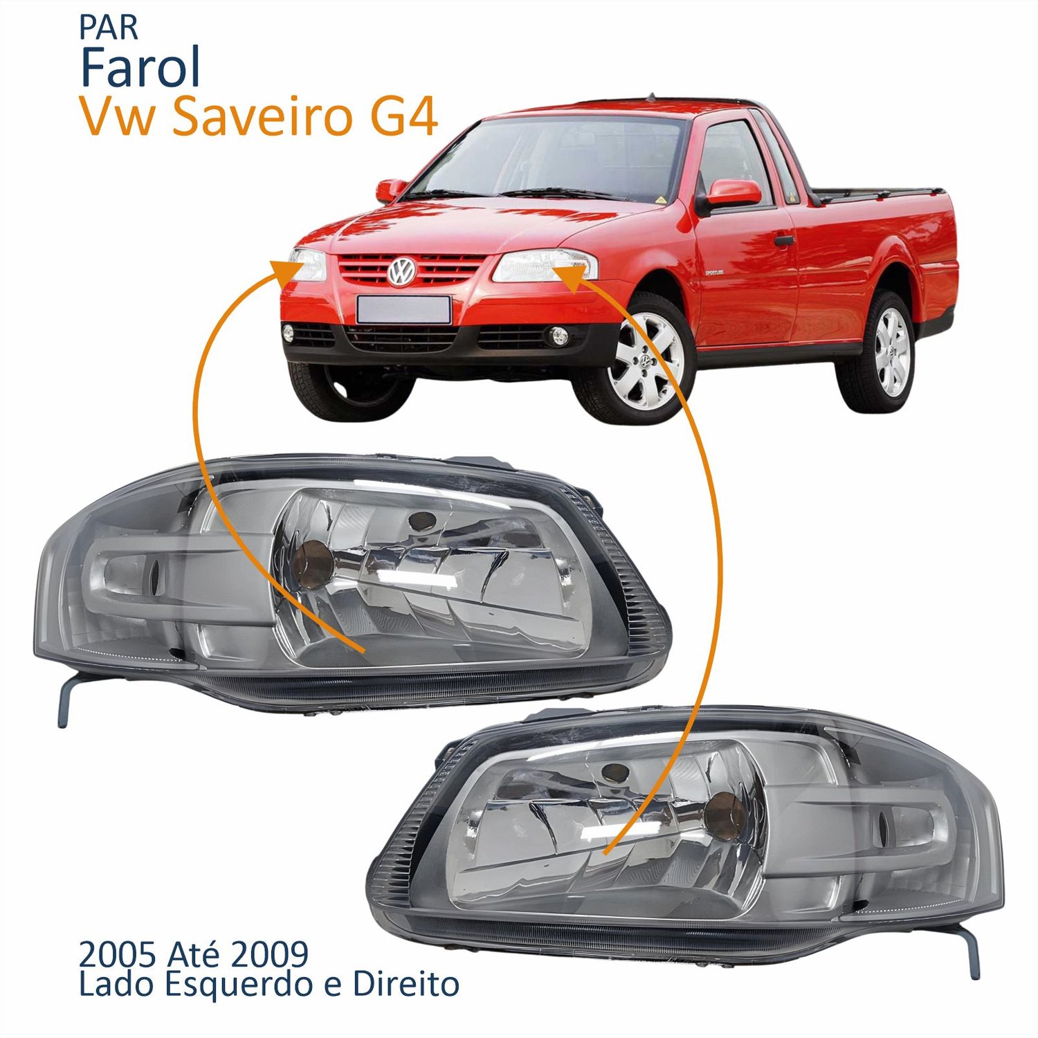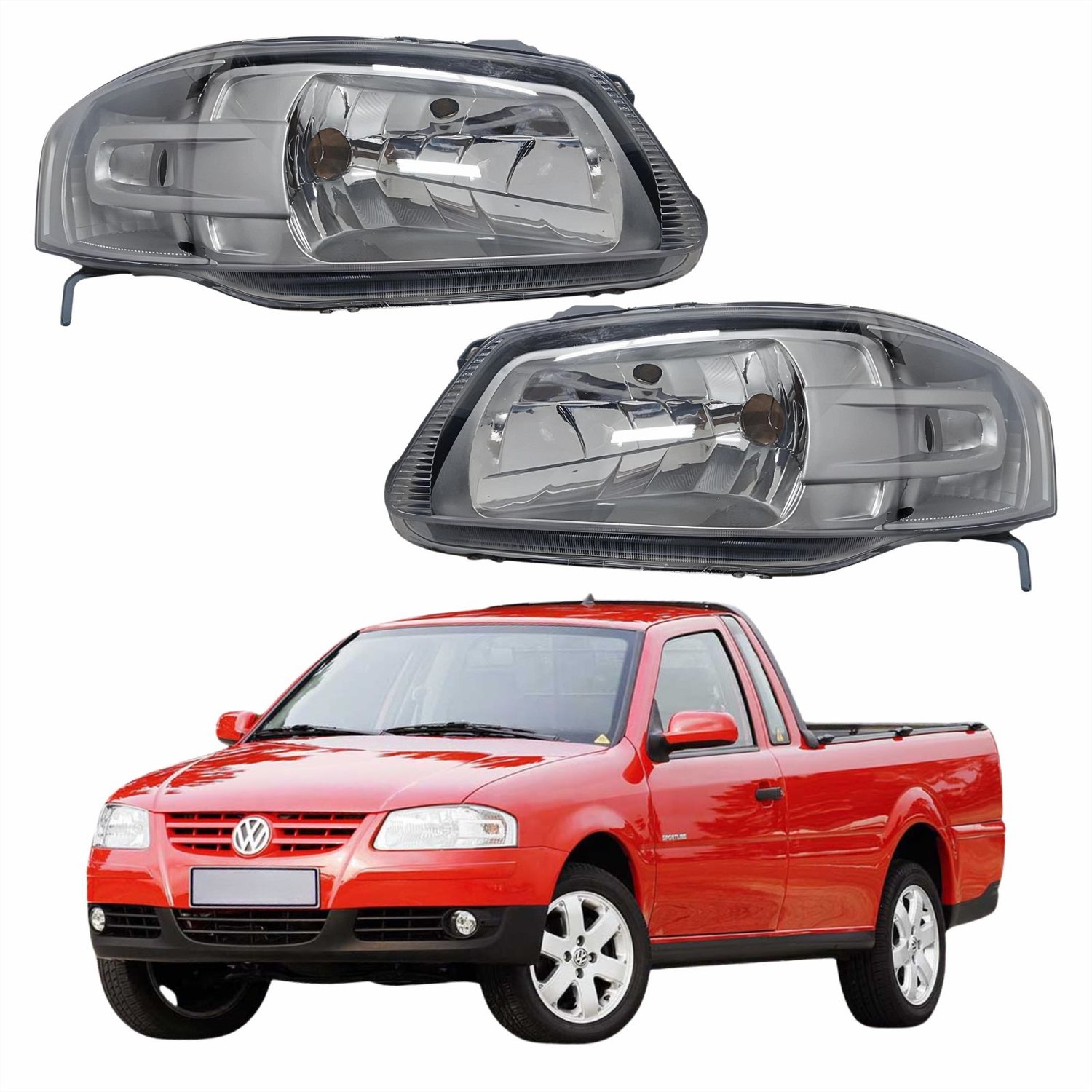Par Farol Principal Vw Saveiro G4 2005 Até 2009 Máscara Cinza