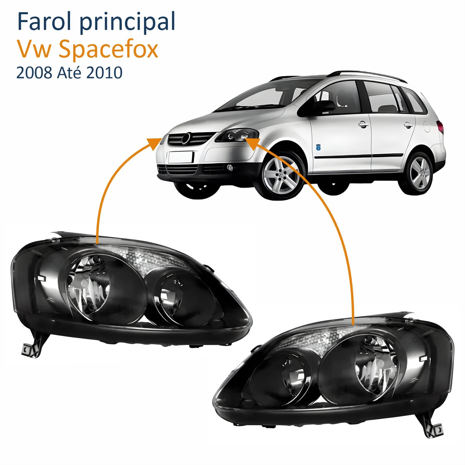 Par Farol Principal Vw Spacefox 2008 2009 2010 Máscara Negra