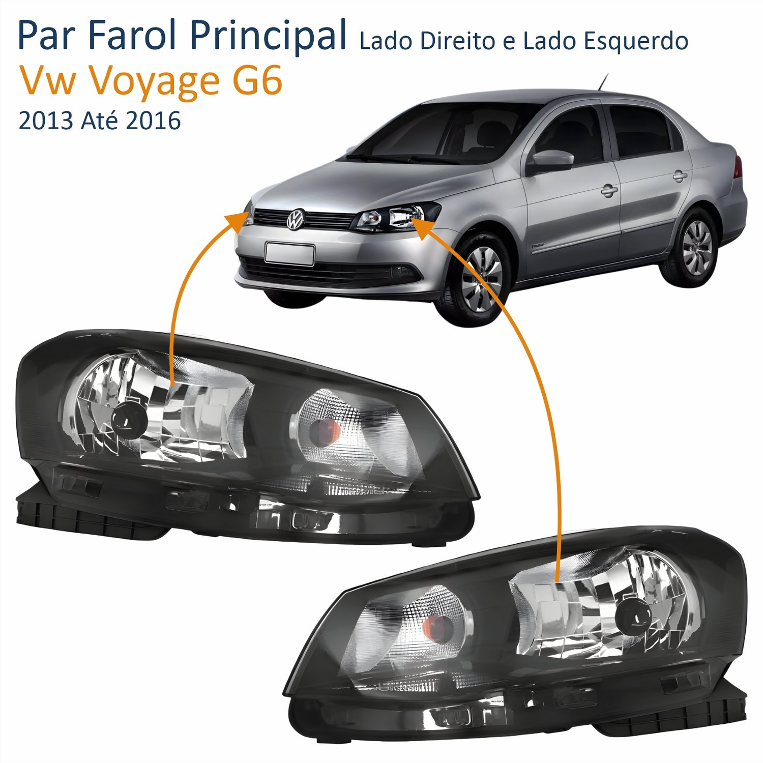 Par Farol Principal Vw Voyage G6 2013 Até 2016 Foco Simples