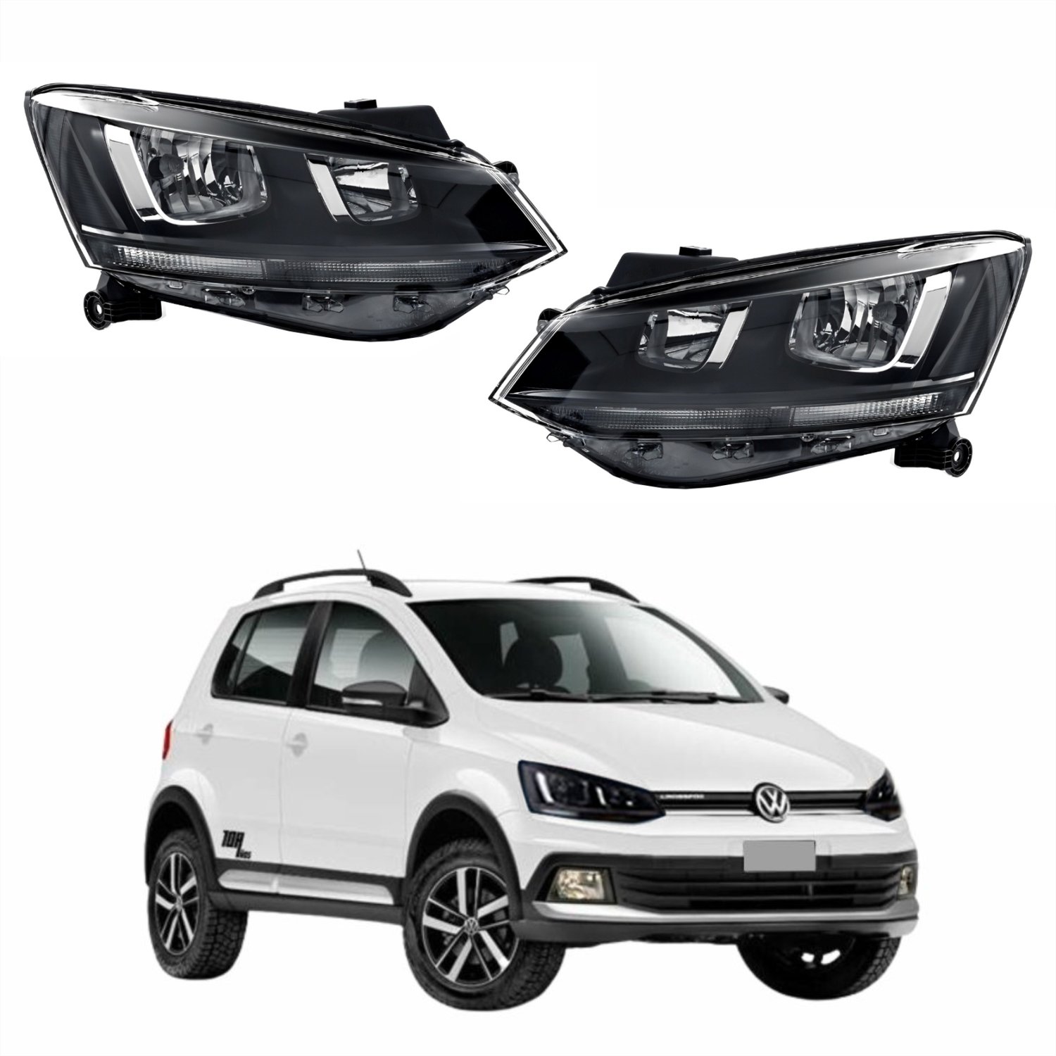 Par Farol Vw Crossfox 2015 Até 2019 Original Friso Preto