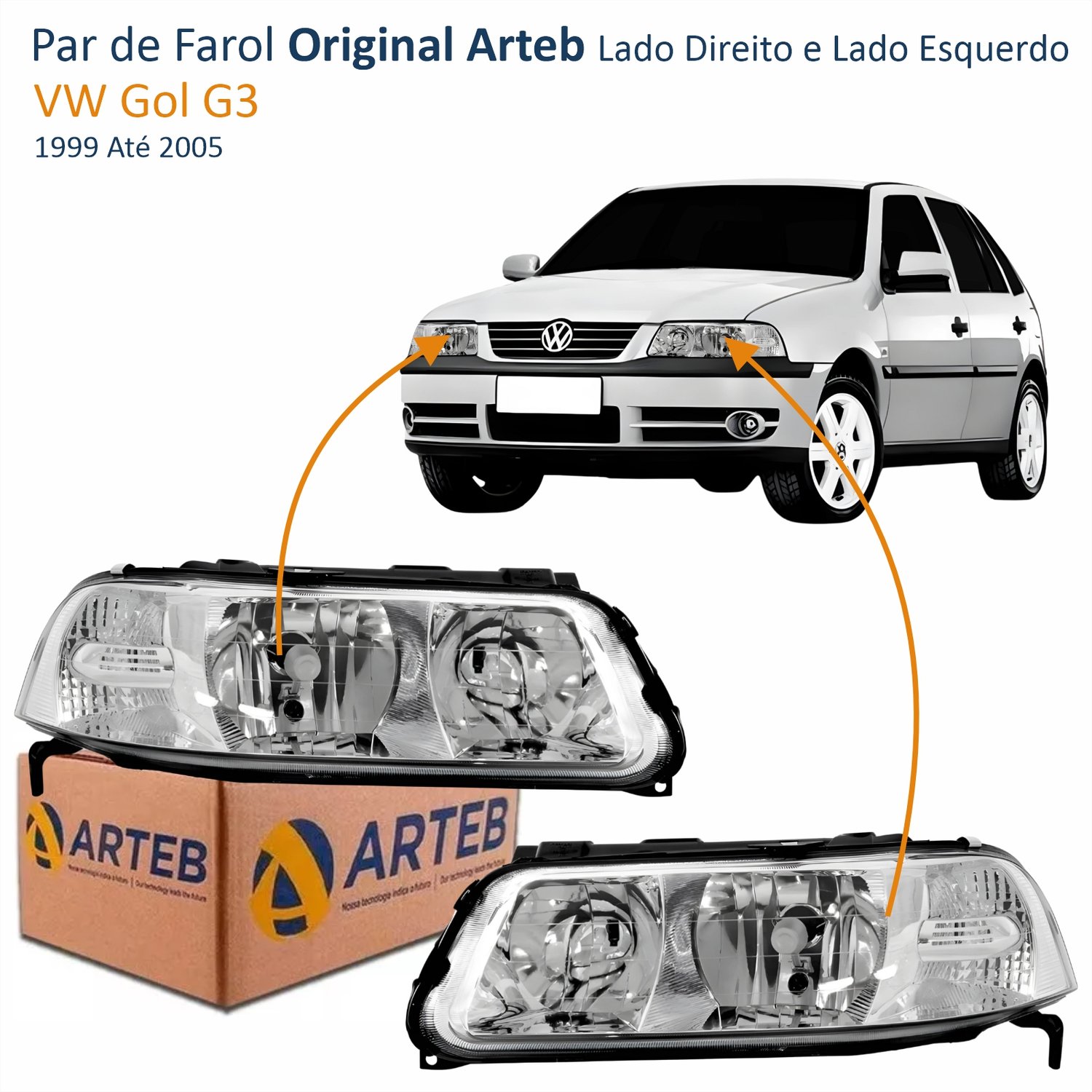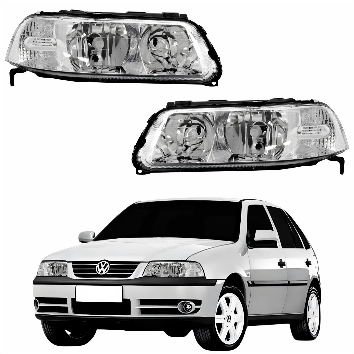 Par Farol VW Gol G3 1999 Até 2005 Foco Duplo Máscara Cromada ARTEB