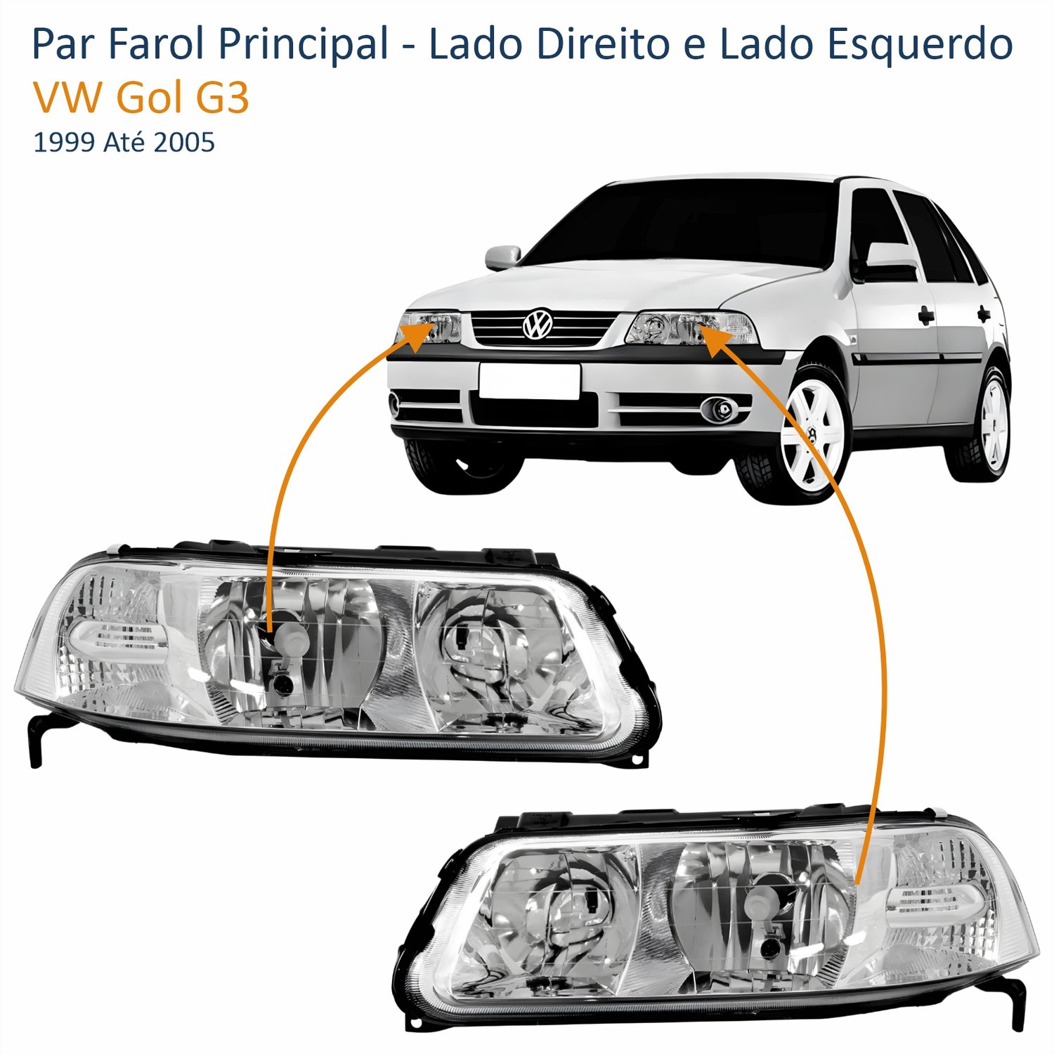 Par Farol VW Gol G3 1999 Até 2005 Foco Duplo Máscara Cromada