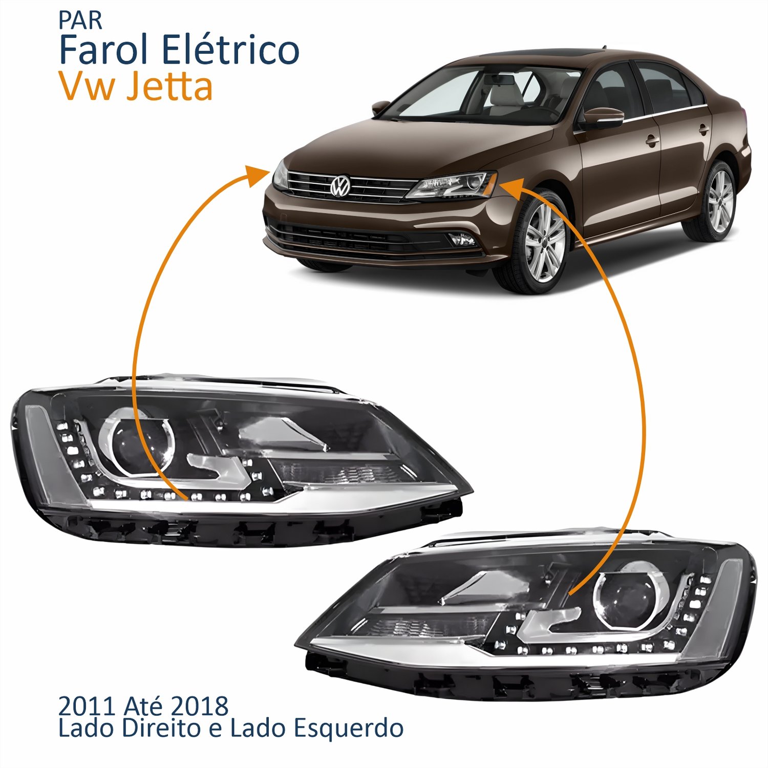 Par Farol Vw Jetta 2011 Até 2018 Elétrico Com Led E Projetor