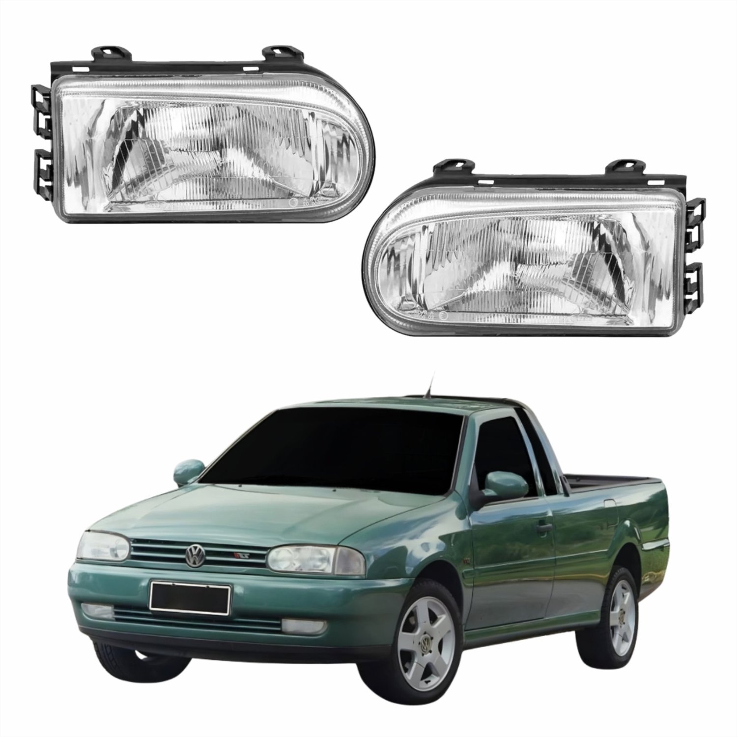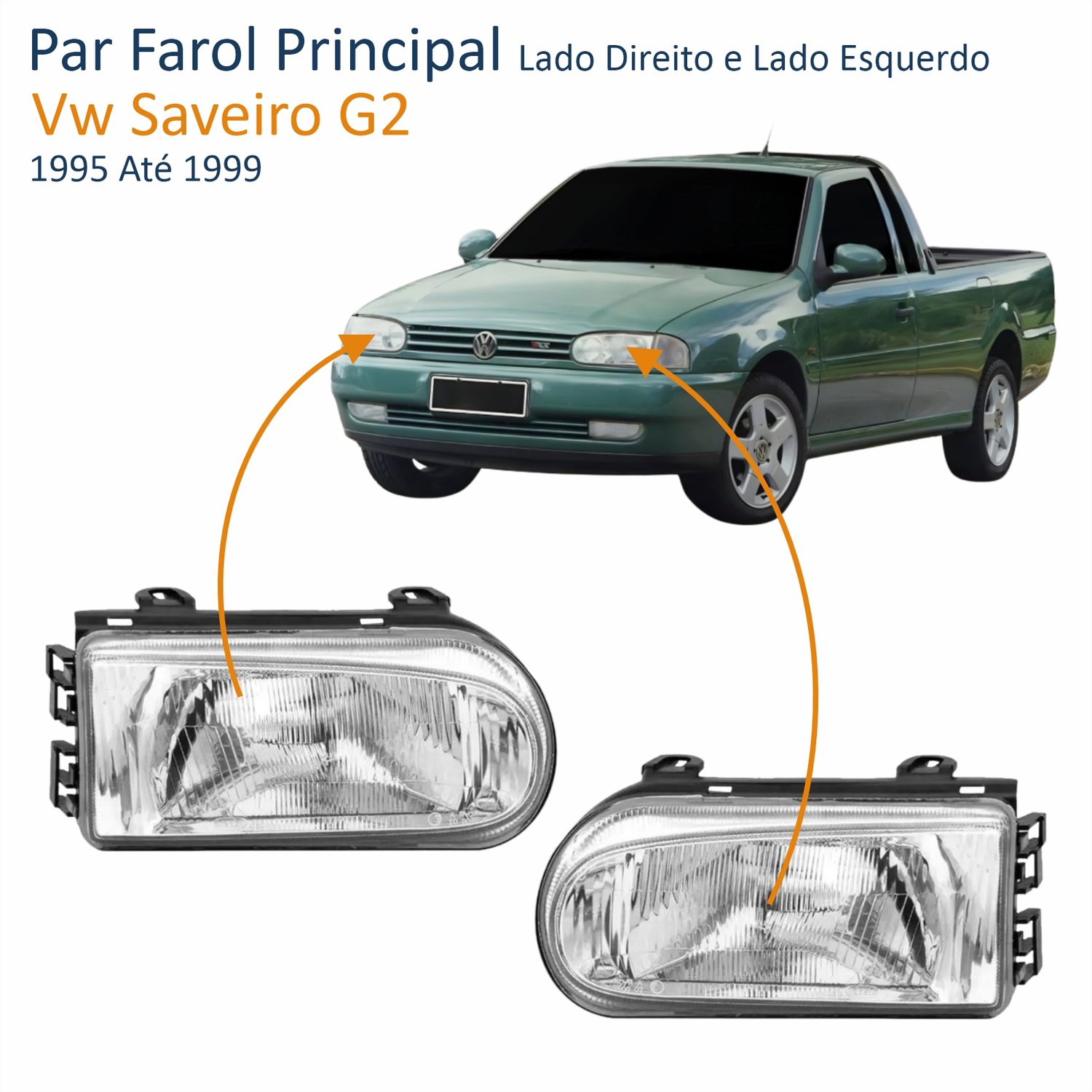Par Farol Vw Saveiro G2 1995 Até 1999 Foco Simples Máscara Cromada
