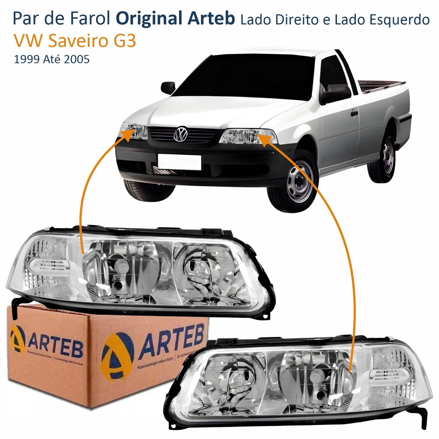 Par Farol VW Saveiro G3 1999 Até 2005 Foco Duplo Máscara Cromada ARTEB