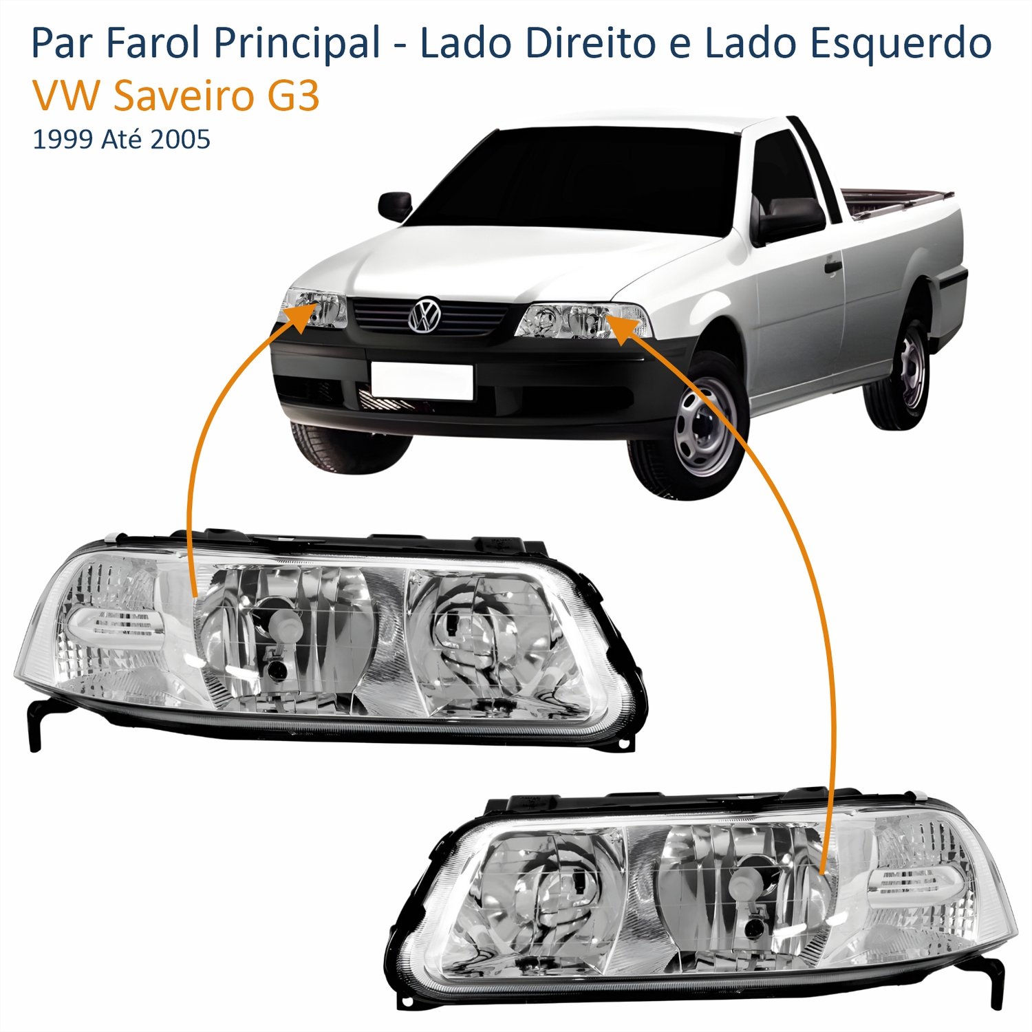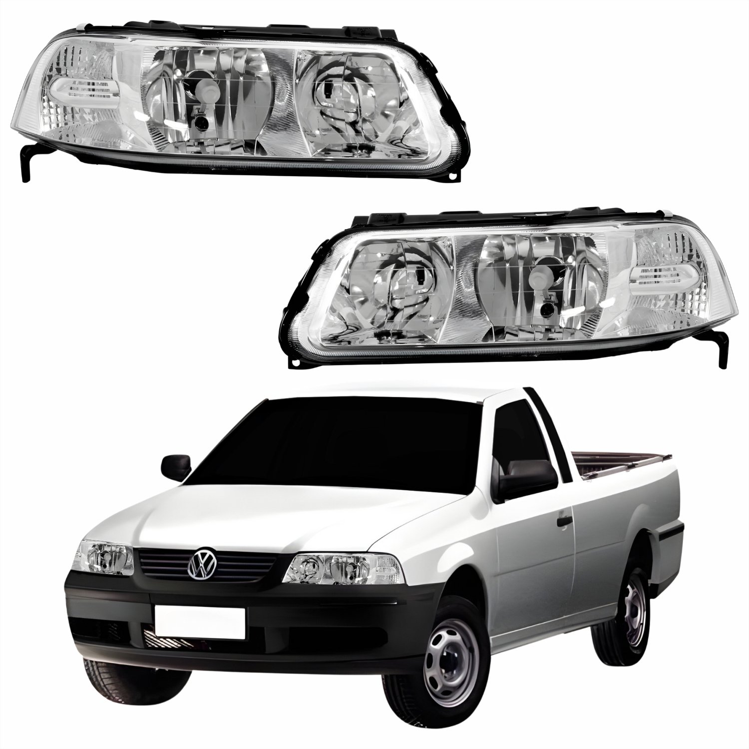 Par Farol VW Saveiro G3 1999 Até 2005 Foco Duplo Máscara Cromada