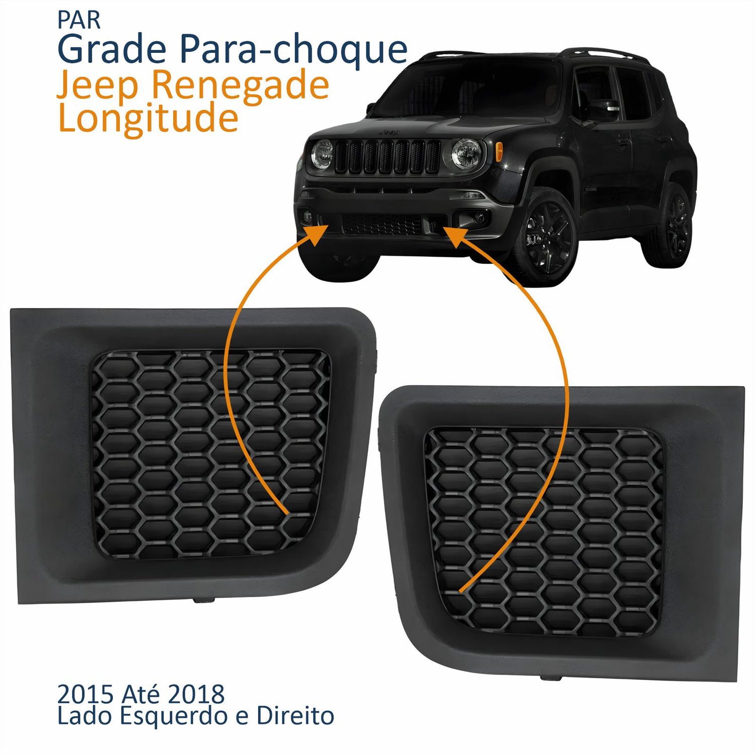 Grade Parachoque Jeep Renegade Longitude 2015 2016 2017 2018 Central Lado Direito Passageiro Quant: 1xGrade Parachoque Jeep Renegade Longitude 2015 2016 2017 2018 Central Lado Esquerdo Motorista Quant: 1x