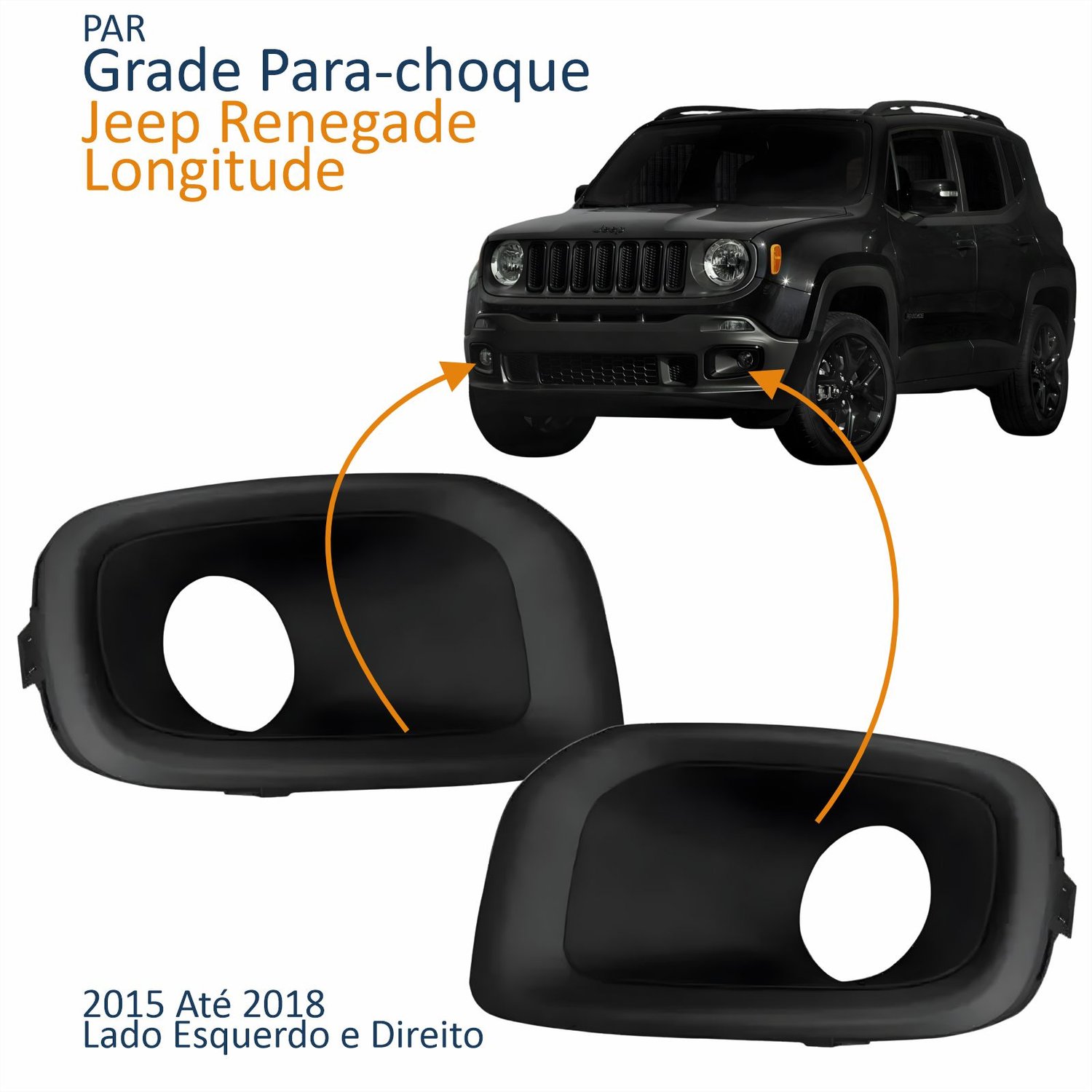 Grade Parachoque Jeep Renegade Longitude 2015 2016 2017 2018 Com Furo Lado Direito Passageiro Quant: 1xGrade Parachoque Jeep Renegade Longitude 2015 2016 2017 2018 Com Furo Lado Esquerdo Motorista Quant: 1x