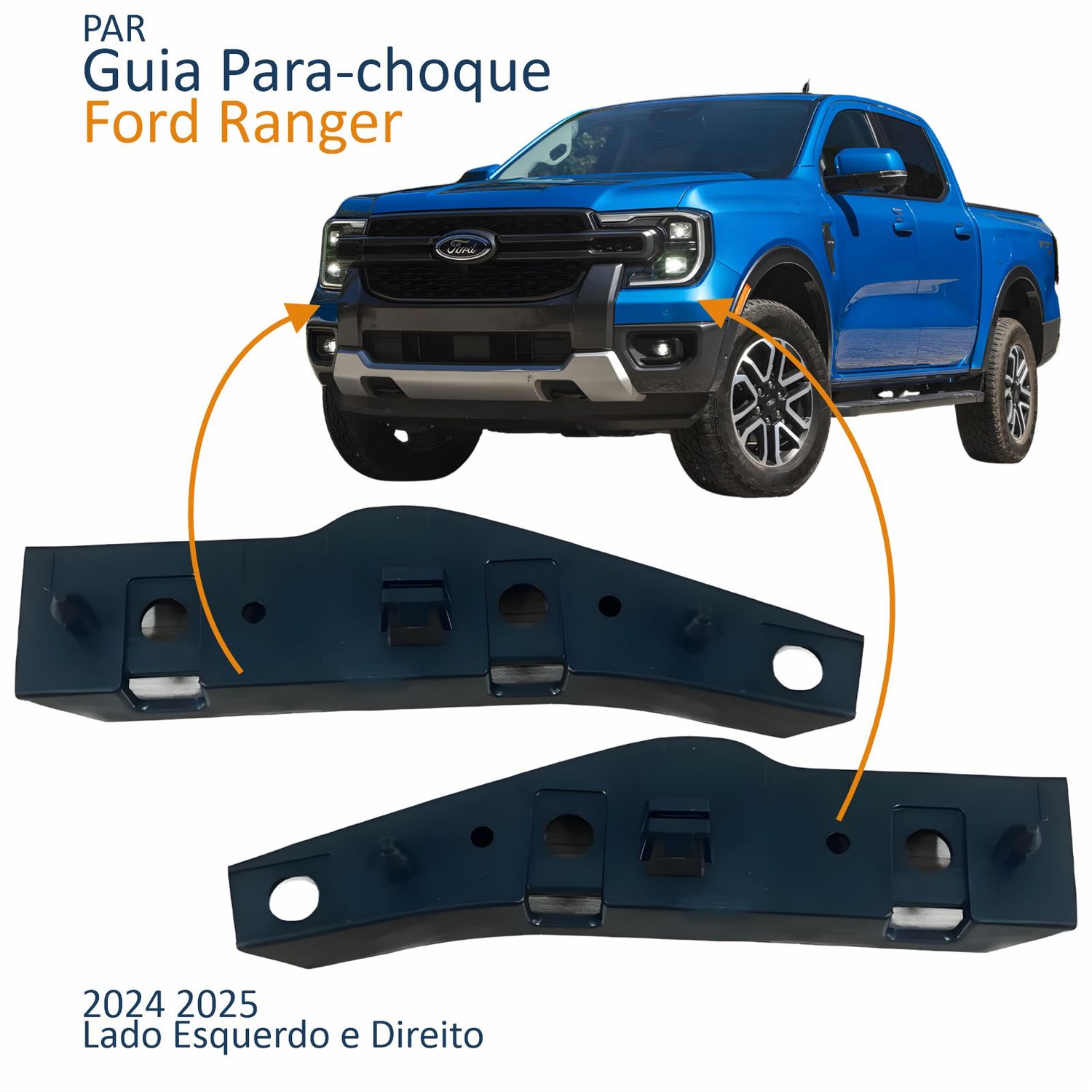 Guia Parachoque Ford Ranger 2024 2025 Lado Direito PassageiroTamanho: ÚnicoGuia Parachoque Ford Ranger 2024 2025 Lado Esquerdo MotoristaTamanho: Único