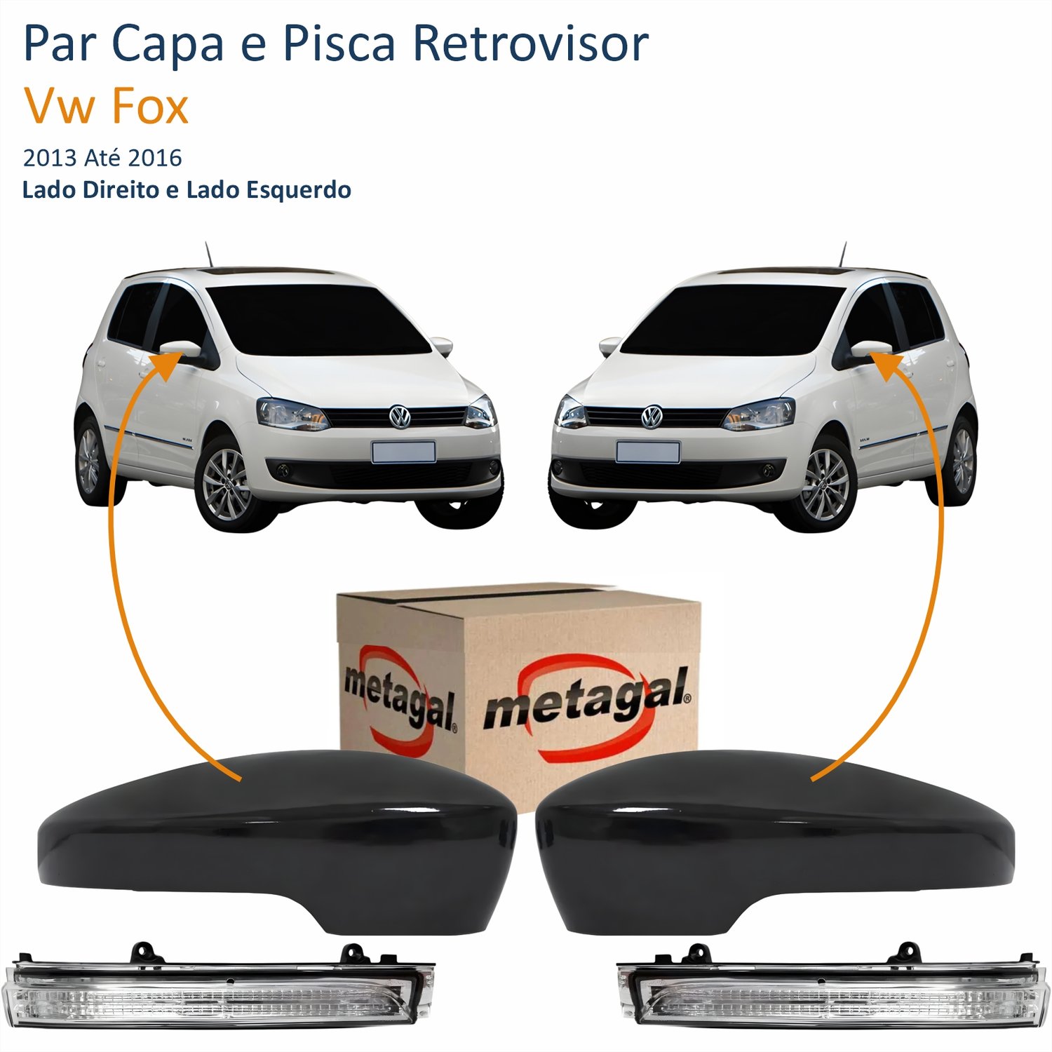 Par Kit Capa Com Pisca Retrovisor Vw Fox 2013 Até 2016 Liso