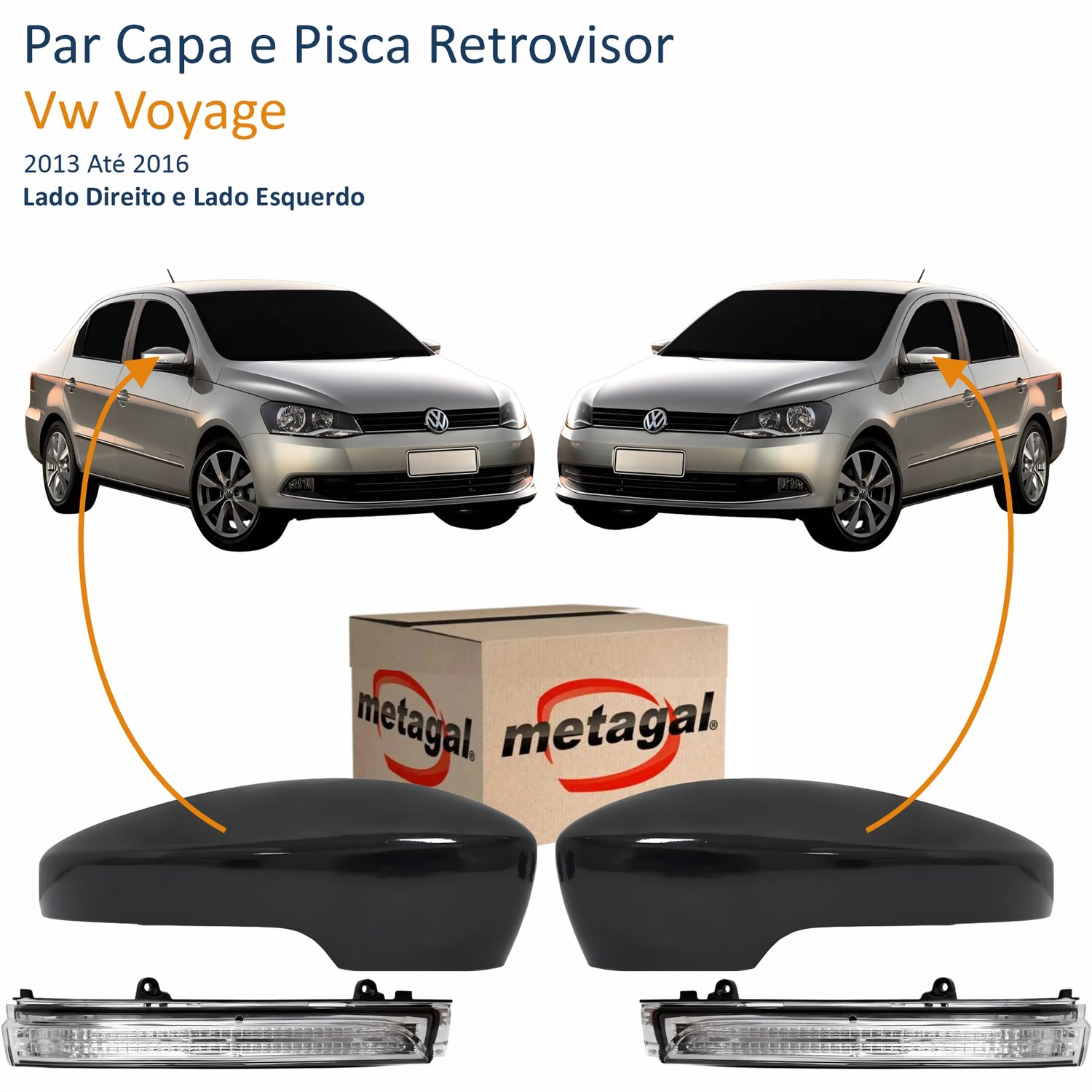 Par Kit Capa Com Pisca Retrovisor Vw Voyage G6 2013 Até 2016 Liso