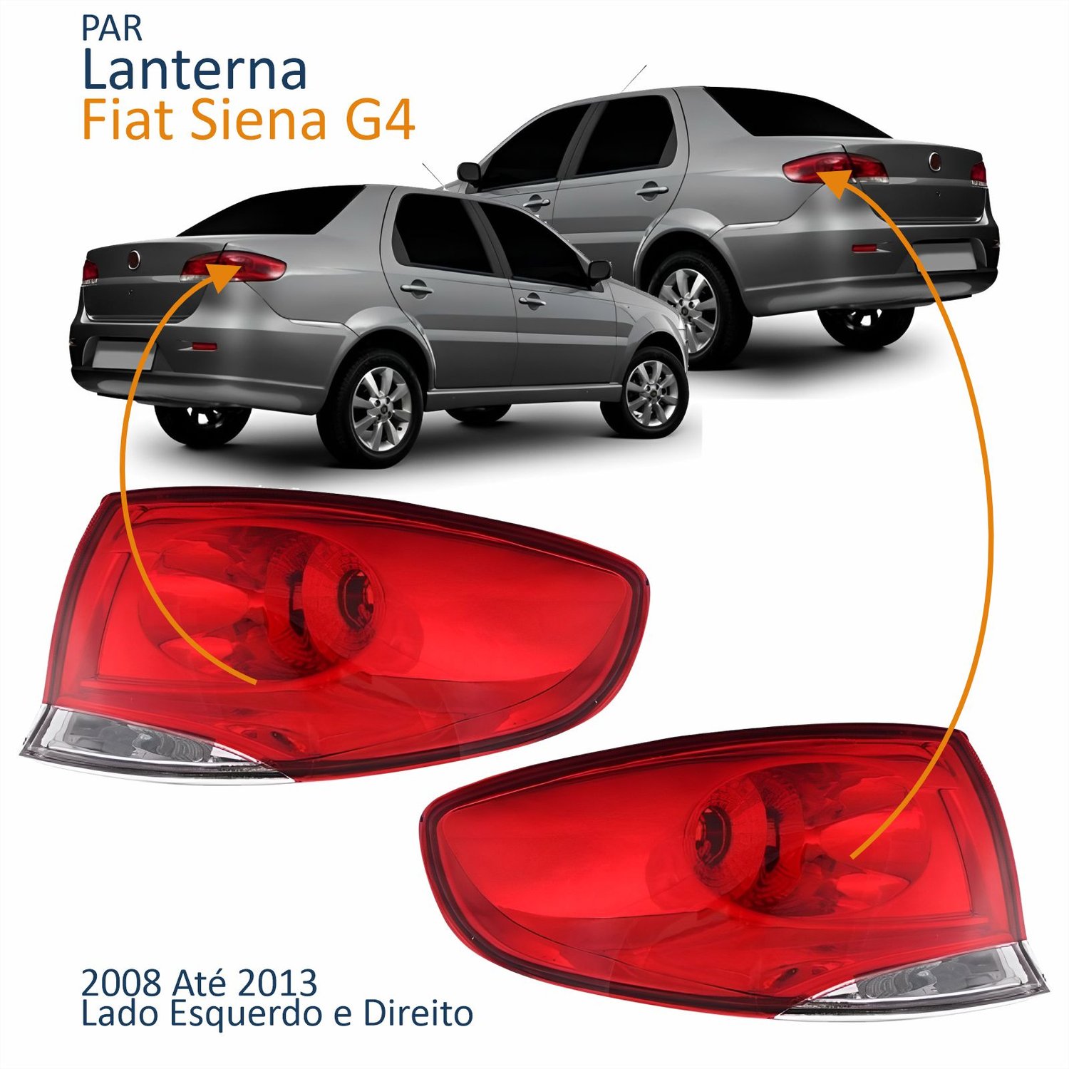 Lanterna Traseira Fiat Siena G4 2008 Até 2013 Canto Bicolor Lado Direito PassageiroTamanho: ÚnicoLanterna Traseira Fiat Siena G4 2008 Até 2013 Canto Bicolor Lado Esquerdo MotoristaTamanho: Único