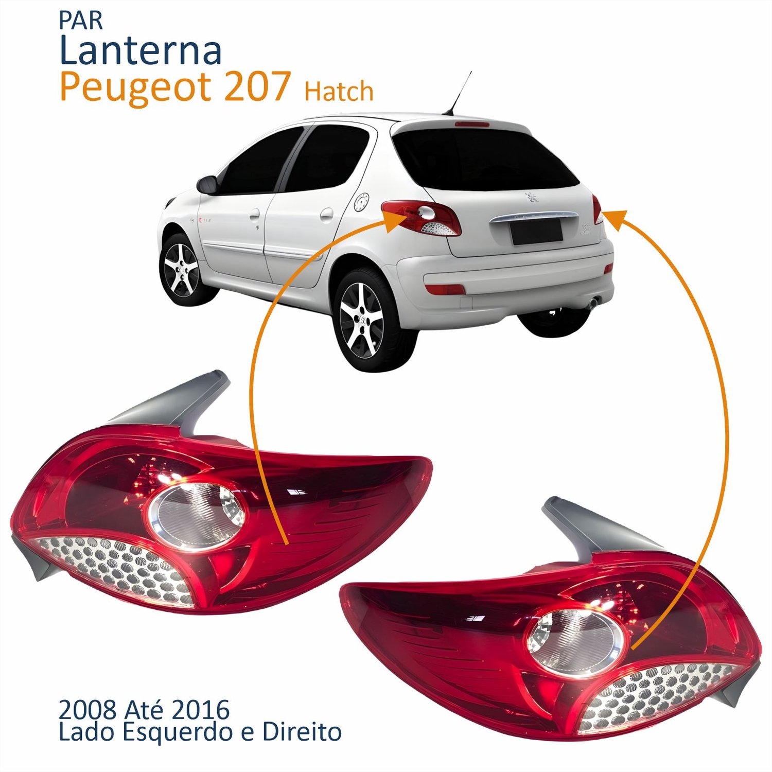 Par Lanterna Traseira Peugeot 207 Hatch 2008 Até 2016 Bicolor Grade Cromada