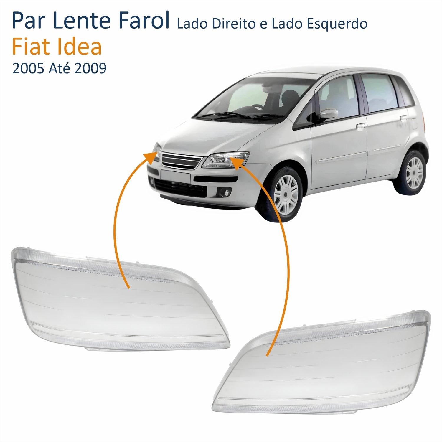 Lente Farol Fiat Idea 2005 Até 2009 Lado Direito PassageiroLado: ÚnicoLente Farol Fiat Idea 2005 Até 2009 Lado Esquerdo MotoristaLado: Único