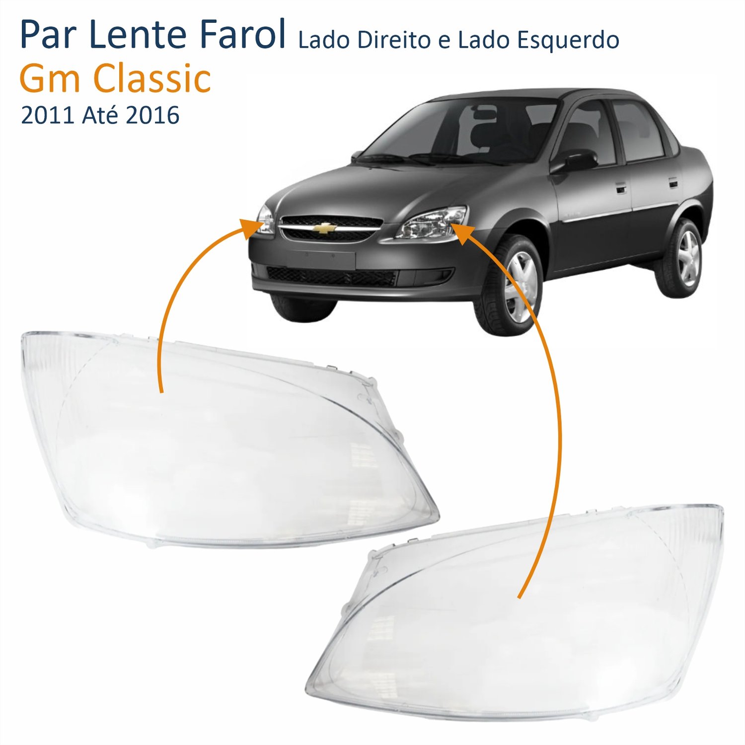 Lente Farol Gm Classic 2011 Até 2016 Lado Direito PassageiroLado: ÚnicoLente Farol Gm Classic 2011 Até 2016 Lado Esquerdo MotoristaLado: Único