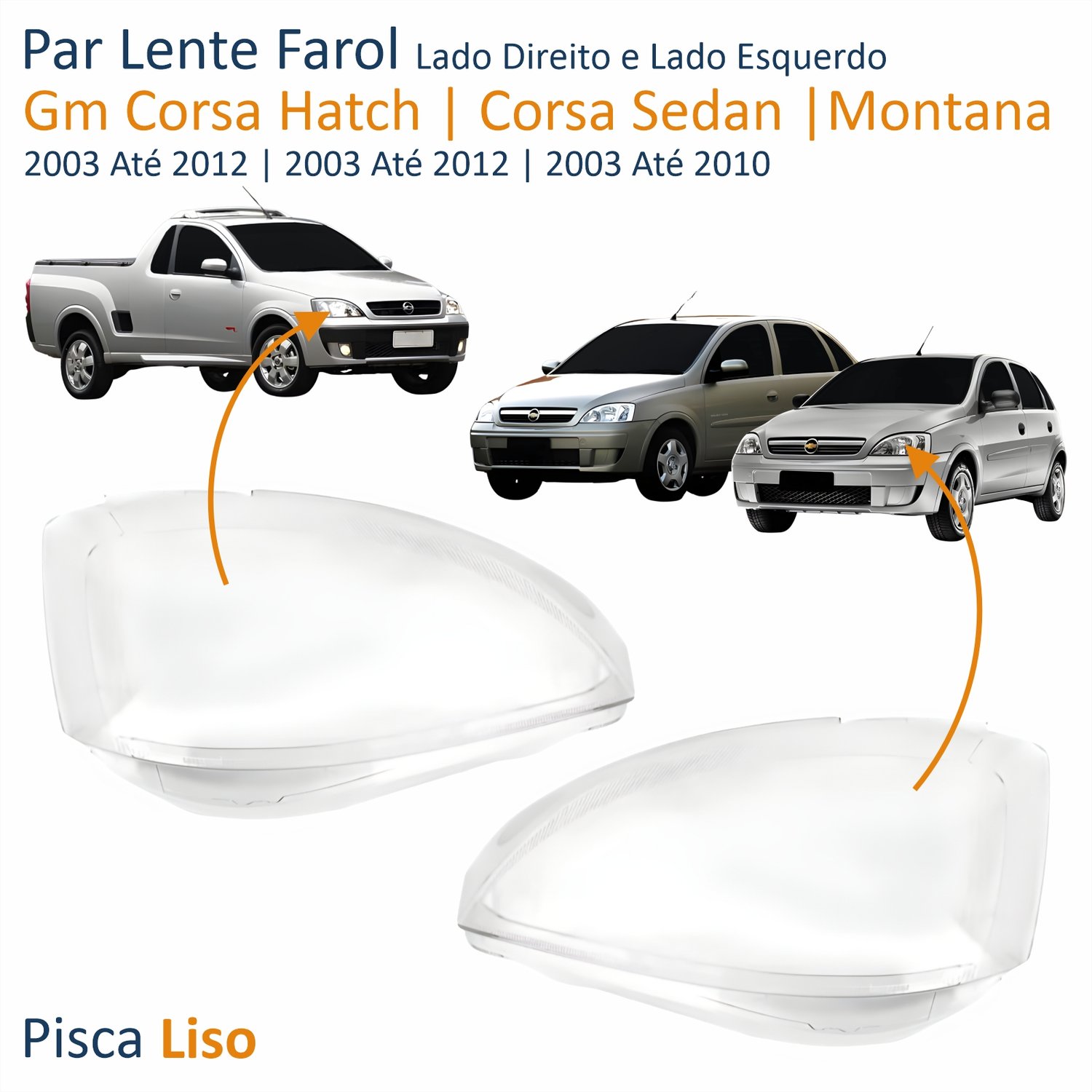 Lente Farol Gm Corsa 2003 Até 2012 Montana 2003 Até 2010 Pisca Liso Lado Direito PassageiroLado: ÚnicoLente Farol Gm Corsa 2003 Até 2012 Montana 2003 Até 2010 Pisca Liso Lado Esquerdo MotoristaLado: Único
