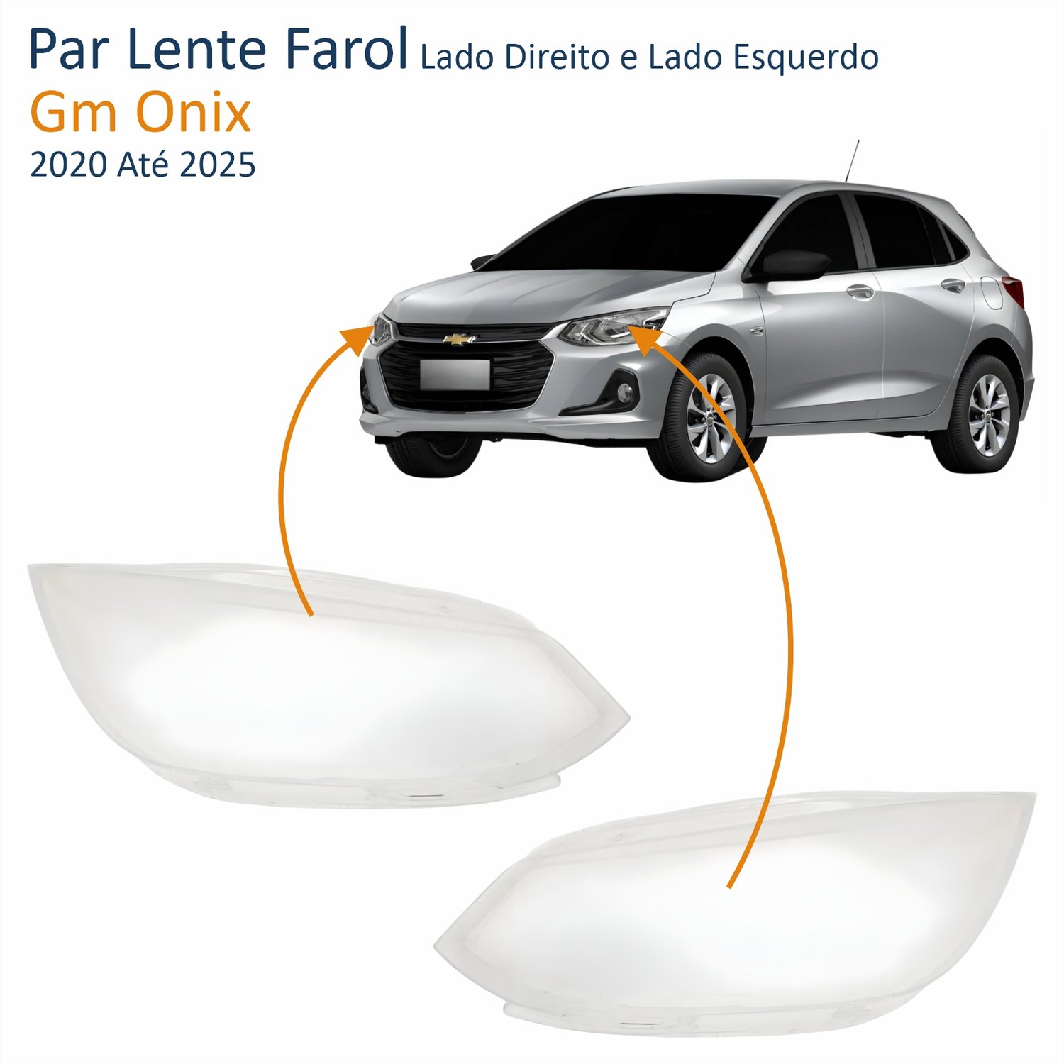 Lente Farol Gm Onix 2020 Até 2025 Lado Direito PassageiroLado: ÚnicoLente Farol Gm Onix 2020 Até 2025 Lado Esquerdo MotoristaLado: Único