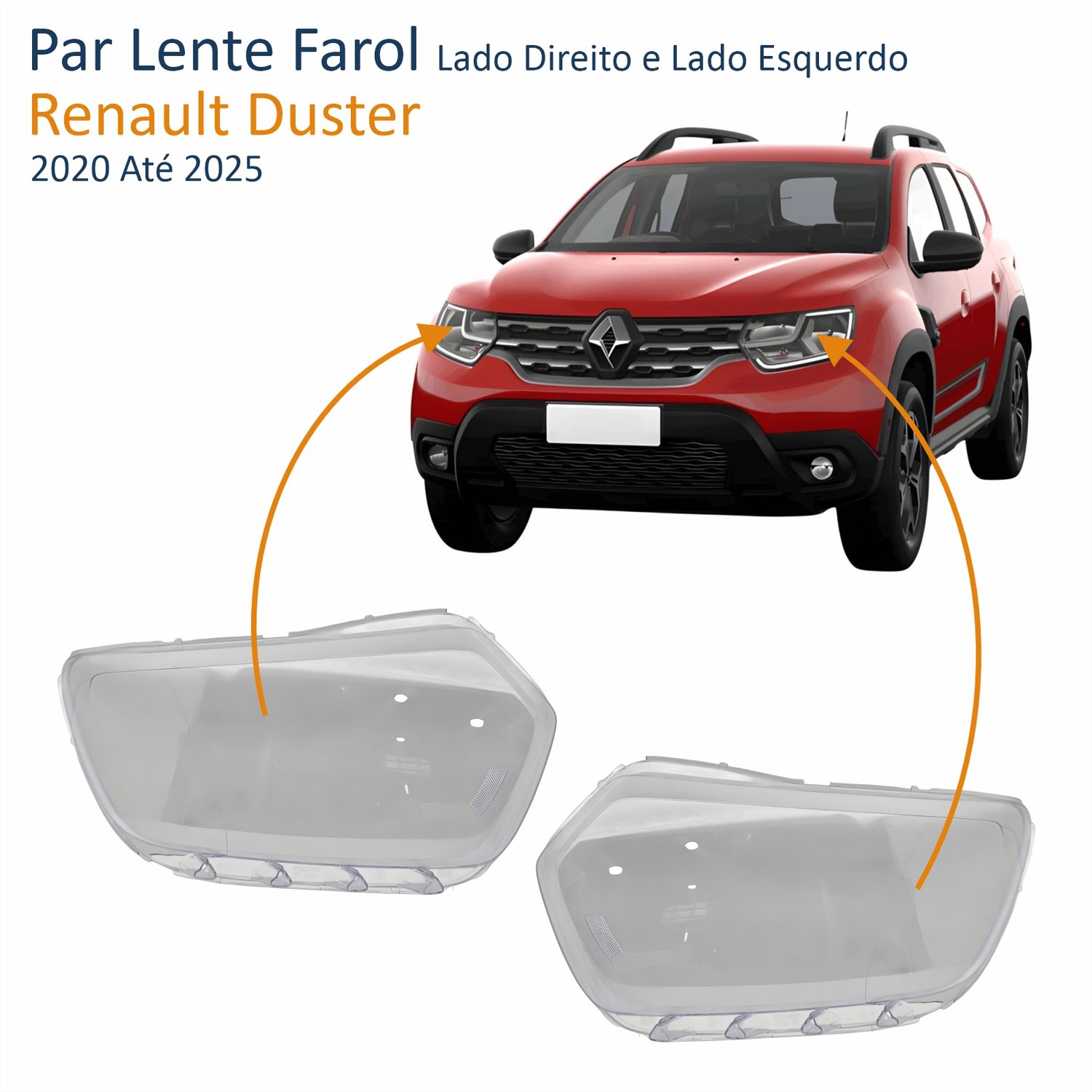 Lente Farol Renault Duster 2020 Até 2025 Lado Direito PassageiroLado: ÚnicoLente Farol Renault Duster 2020 Até 2025 Lado Esquerdo MotoristaLado: Único
