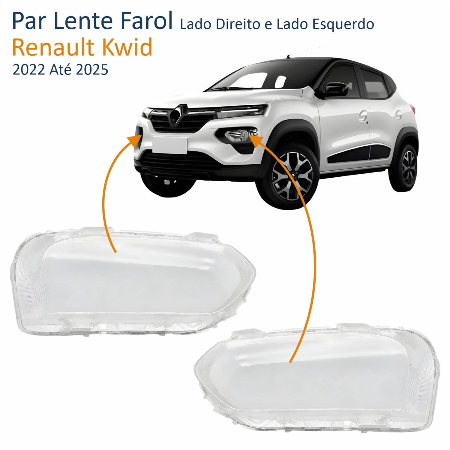 Lente Farol Renault Kwid 2022 Até 2025 Lado Direito PassageiroLado: ÚnicoLente Farol Renault Kwid 2022 Até 2025 Lado Esquerdo MotoristaLado: Único