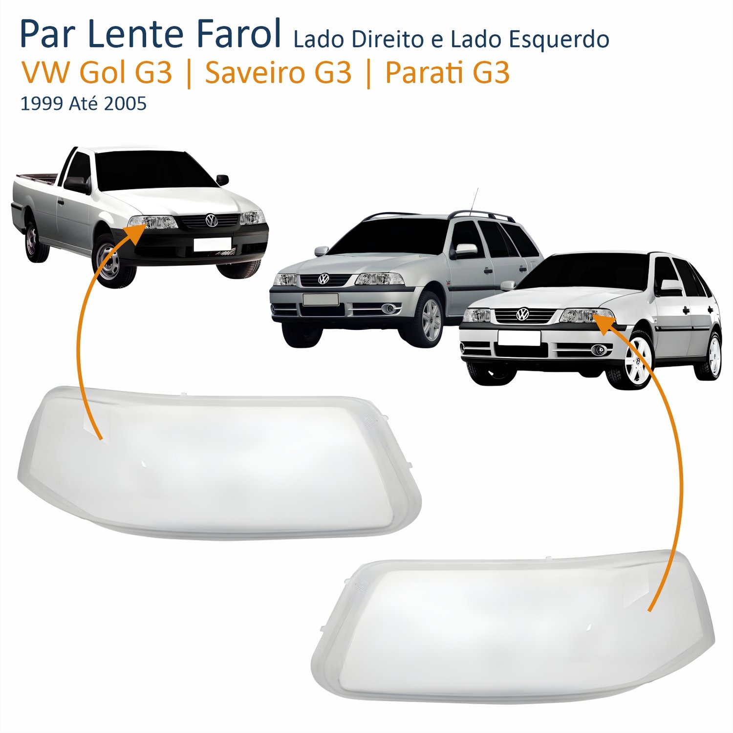 Lente Farol VW Gol Saveiro Parati G3 1999 Até 2005 Lado Direito PassageiroTamanho: ÚnicoLente Farol VW Gol Saveiro Parati G3 1999 Até 2005 Lado Esquerdo MotoristaTamanho: Único