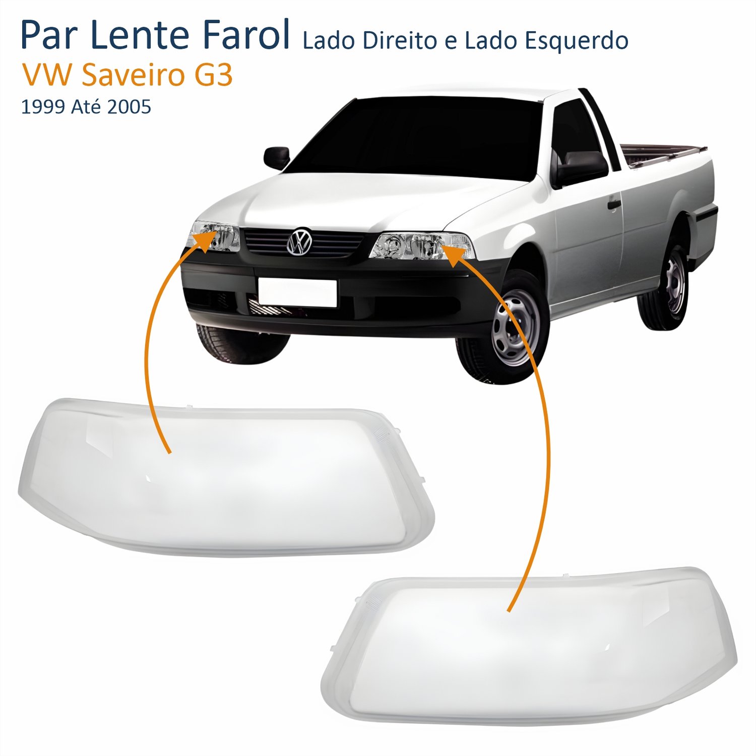 Lente Farol VW Gol Saveiro Parati G3 1999 Até 2005 Lado Direito PassageiroTamanho: ÚnicoLente Farol VW Gol Saveiro Parati G3 1999 Até 2005 Lado Esquerdo MotoristaTamanho: Único
