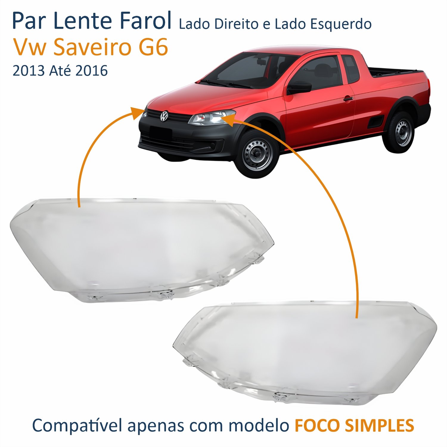 Lente Farol Vw Gol Voyage G6 2013 Até 2016 Saveiro G6 2014 Até 2016 Simples Lado Direito PassageiroTamanho: ÚnicoLente Farol Vw Gol Voyage G6 2013 Até 2016 Saveiro G6 2014 Até 2016 Simples Lado Esquerdo MotoristaTamanho: Único