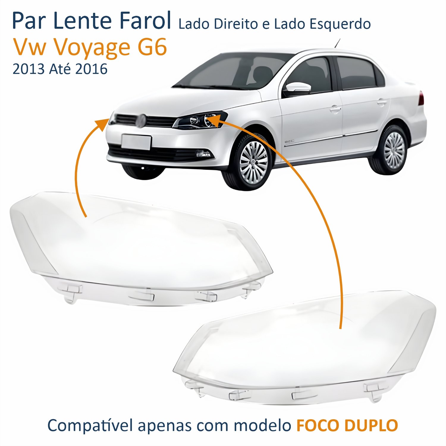 Lente Farol Vw Gol Voyage G6 2013 Até 2016 Saveiro G6 2014 Até 2016 Duplo Lado Direito PassageiroTamanho: ÚnicoLente Farol Vw Gol Voyage G6 2013 Até 2016 Saveiro G6 2014 Até 2016 Duplo Lado Esquerdo MotoristaTamanho: Único