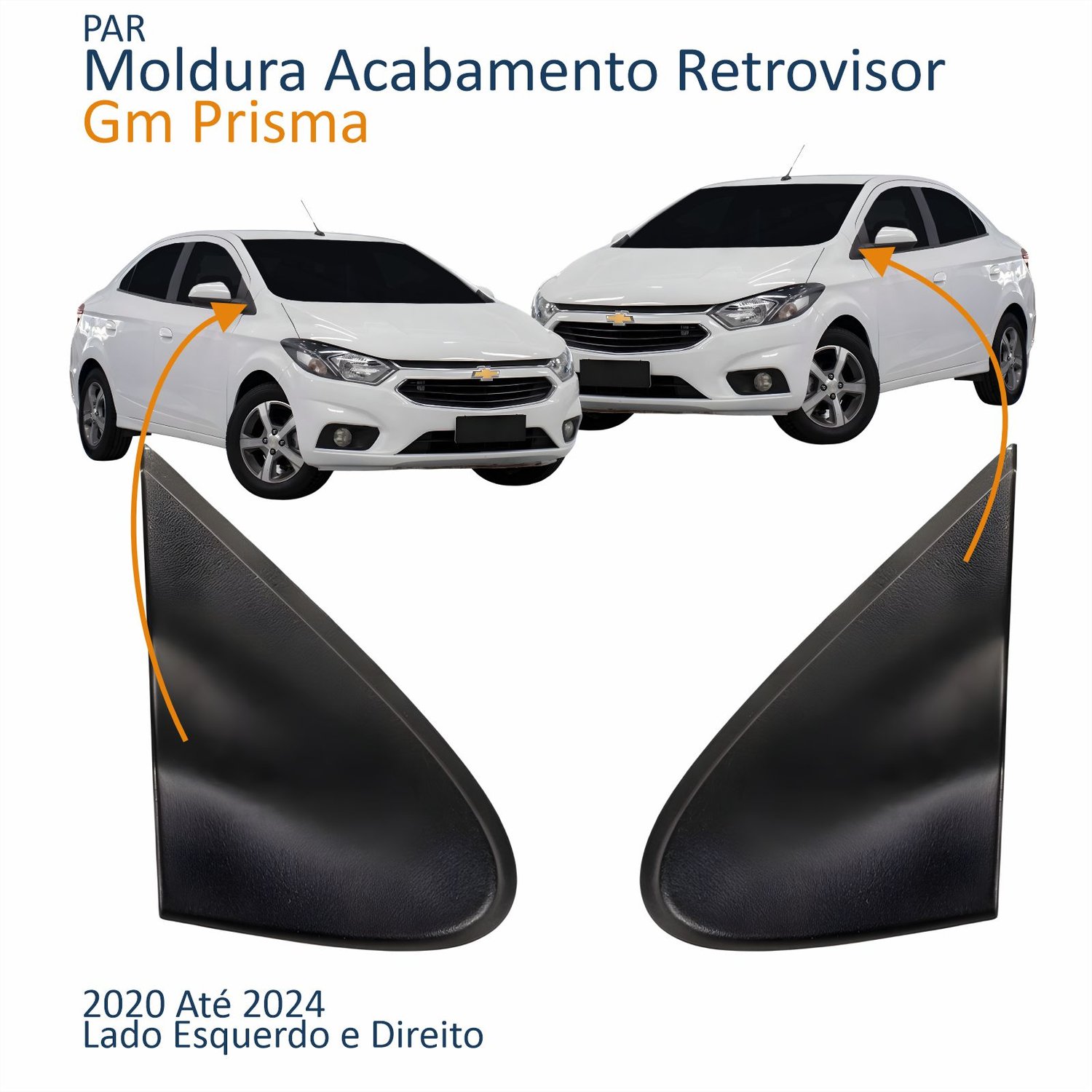 Moldura Acabamento Retrovisor Gm Onix Prisma 2020 2021 2022 2023 2024 Texturizado Lado Direito Passageiro Quant: 1xMoldura Acabamento Retrovisor Gm Onix Prisma 2020 2021 2022 2023 2024 Texturizado Lado Esquerdo Motorista Quant: 1x