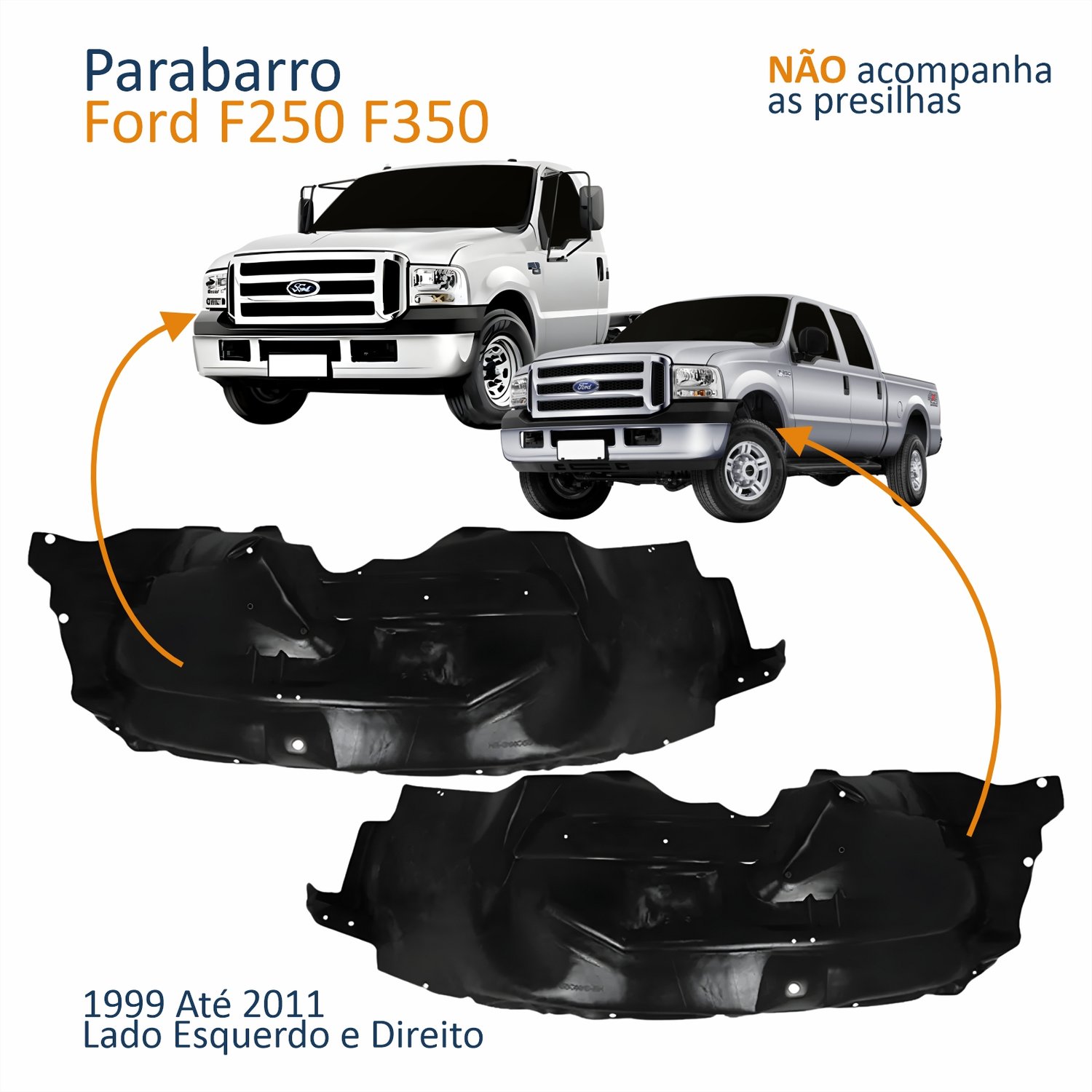 Parabarro Dianteiro Ford F250 F350 1999 Até 2011 Lado Direito PassageiroLado: ÚnicoParabarro Dianteiro Ford F250 F350 1999 Até 2011 Lado Esquerdo MotoristaLado: Único