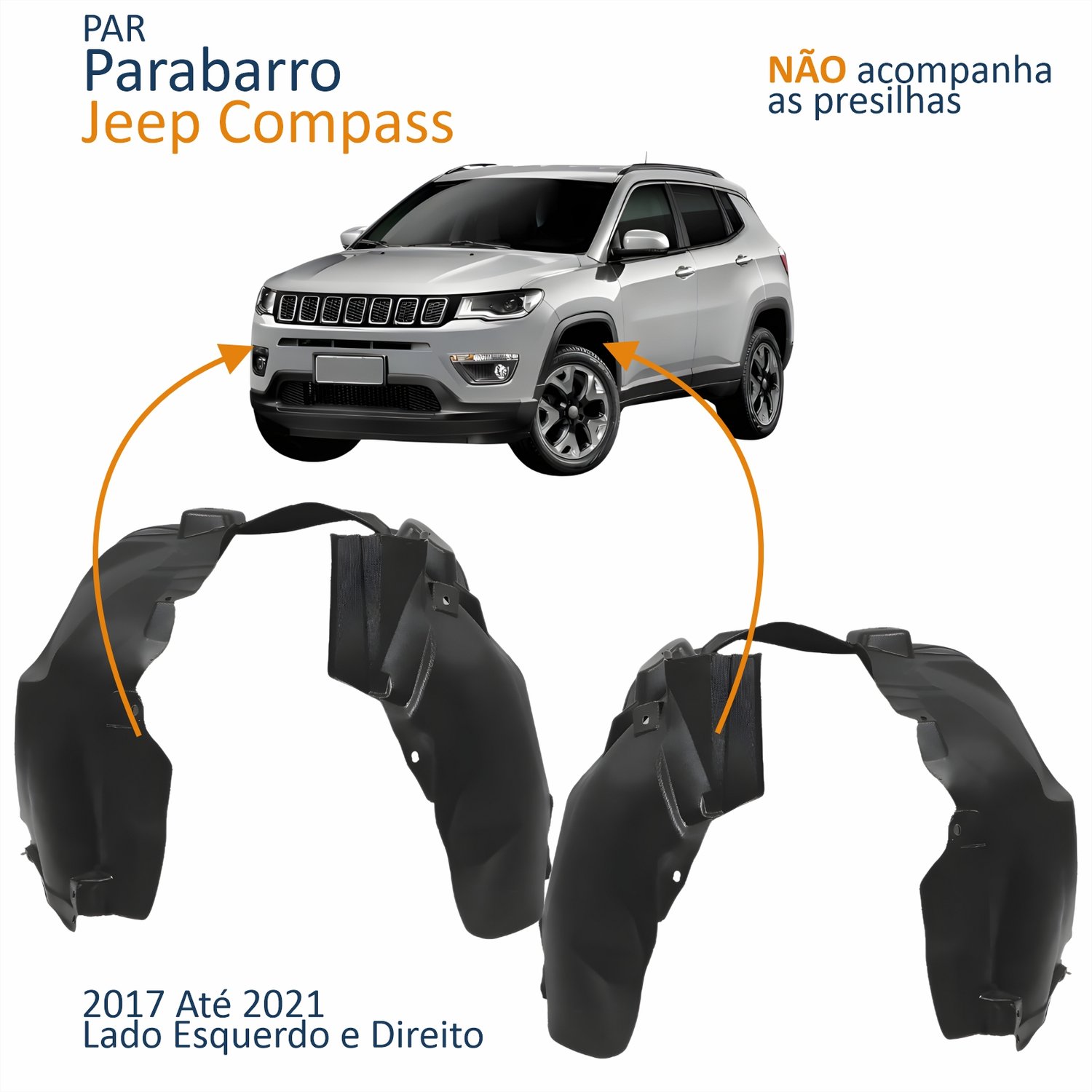 Parabarro Dianteiro Jeep Compass 2017 2018 2019 2020 2021 Lado Direito PassageiroTamanho: ÚnicoParabarro Dianteiro Jeep Compass 2017 2018 2019 2020 2021 Lado Esquerdo MotoristaTamanho: Único