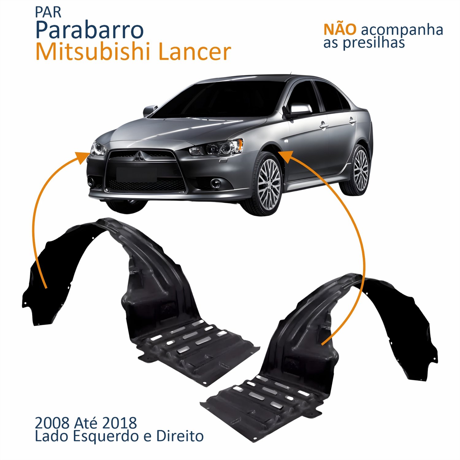 Parabarro Dianteiro Mitsubishi Lancer 2008 Até 2018 Lado Direito PassageiroLado: ÚnicoParabarro Dianteiro Mitsubishi Lancer 2008 Até 2018 Lado Esquerdo MotoristaLado: Único