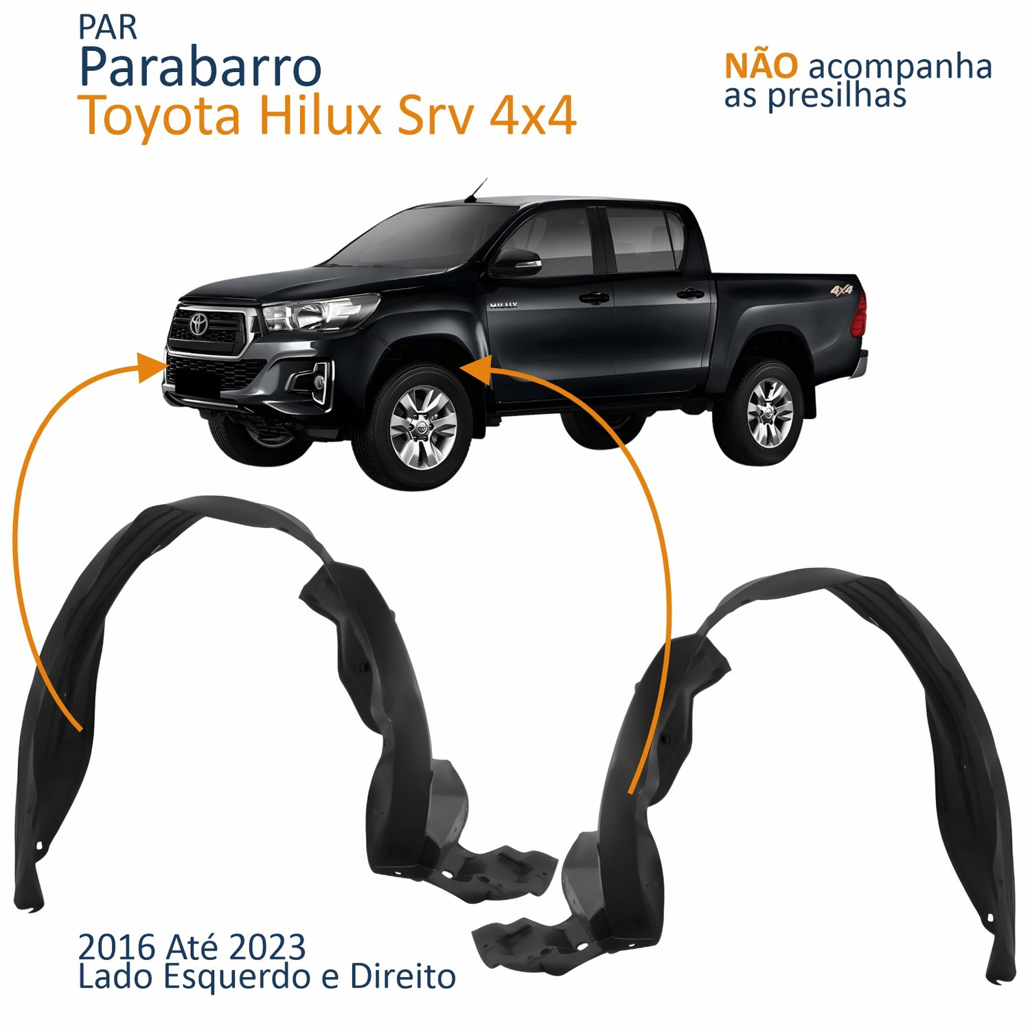Parabarro Dianteiro Toyota Hilux Srv 4x4 2016 Até 2023 Lado Direito PassageiroTamanho: ÚnicoParabarro Dianteiro Toyota Hilux Srv 4x4 2016 Até 2023 Lado Esquerdo MotoristaTamanho: Único