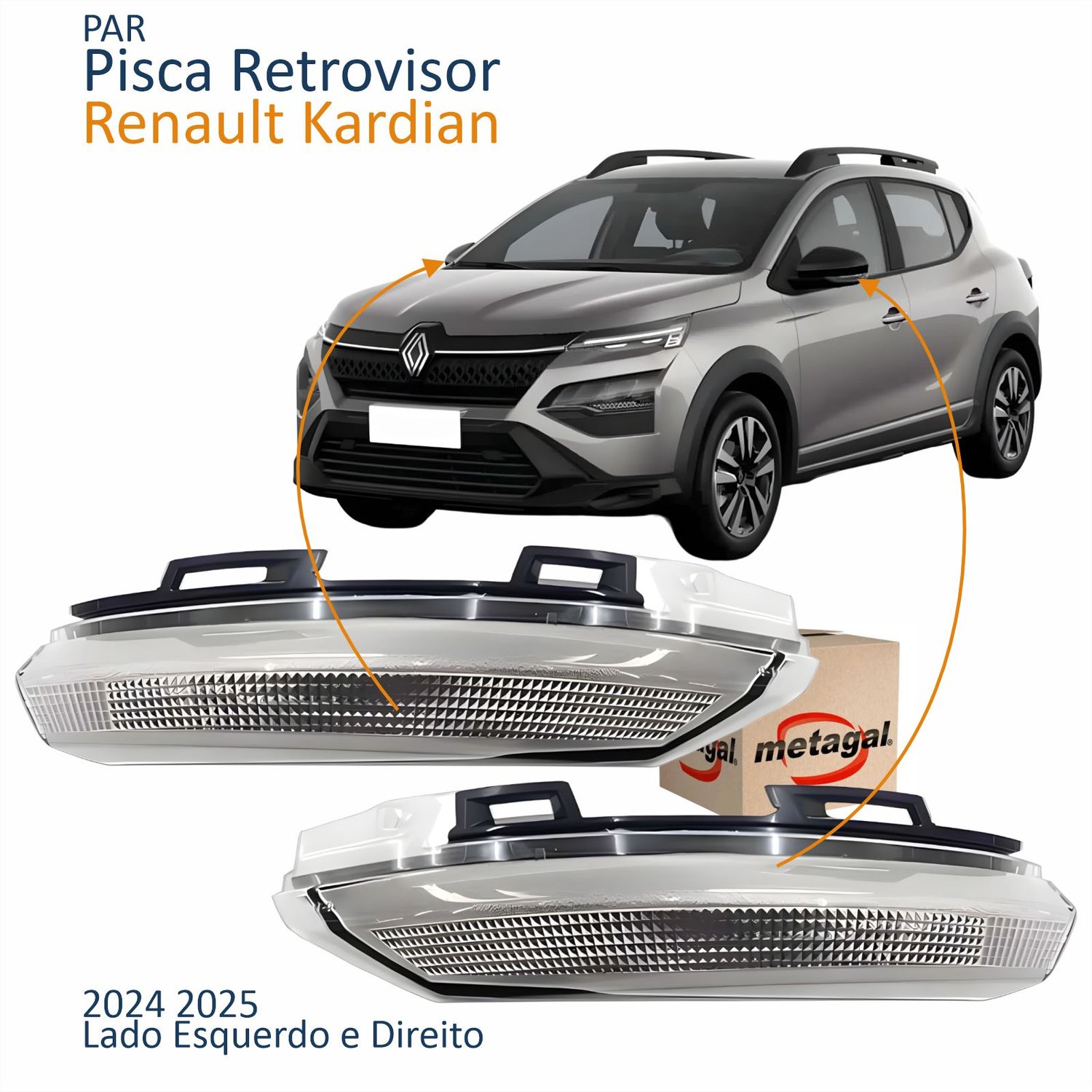 Pisca Retrovisor Renault Kardian 2024 2025 Lado Direito PassageiroTamanho: ÚnicoPisca Retrovisor Renault Kardian 2024 2025 Lado Esquerdo MotoristaTamanho: Único