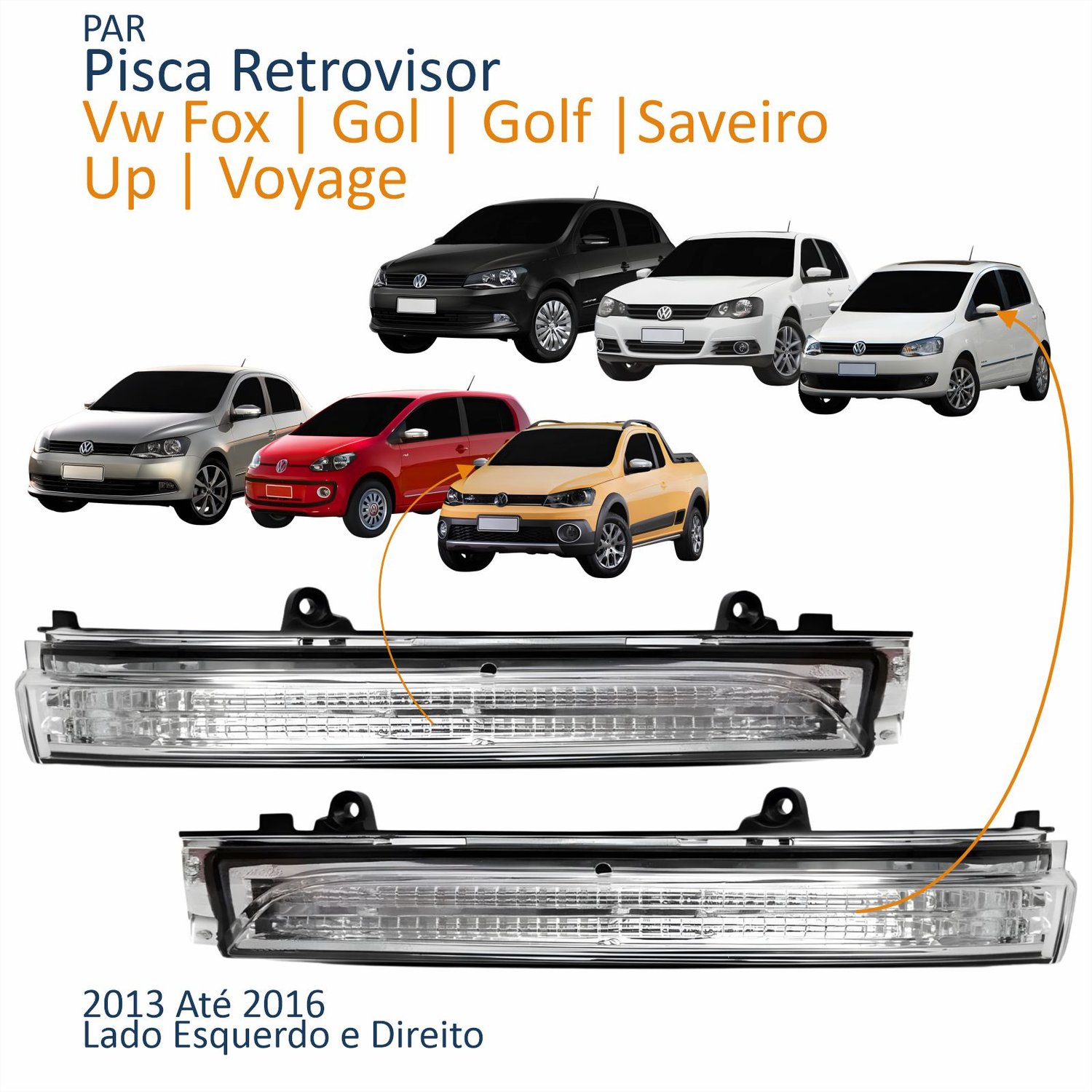Par Pisca Retrovisor Vw Fox Gol Saveiro Voyage G6 2013 Até 2016 Up Golf 2013 2014