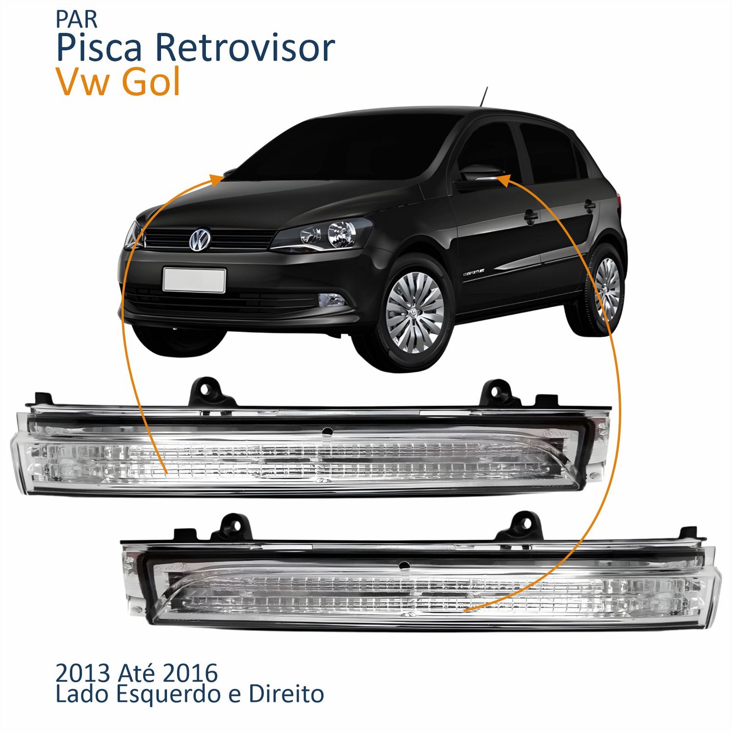 Pisca Retrovisor Vw Fox Gol Saveiro Voyage G6 2013 Até 2016 Up Golf 2013 2014 Lado Direito Passageiro Quant: 1xPisca Retrovisor Vw Fox Gol Saveiro Voyage G6 2013 Até 2016 Up Golf 2013 2014 Lado Esquerdo Motorista Quant: 1x