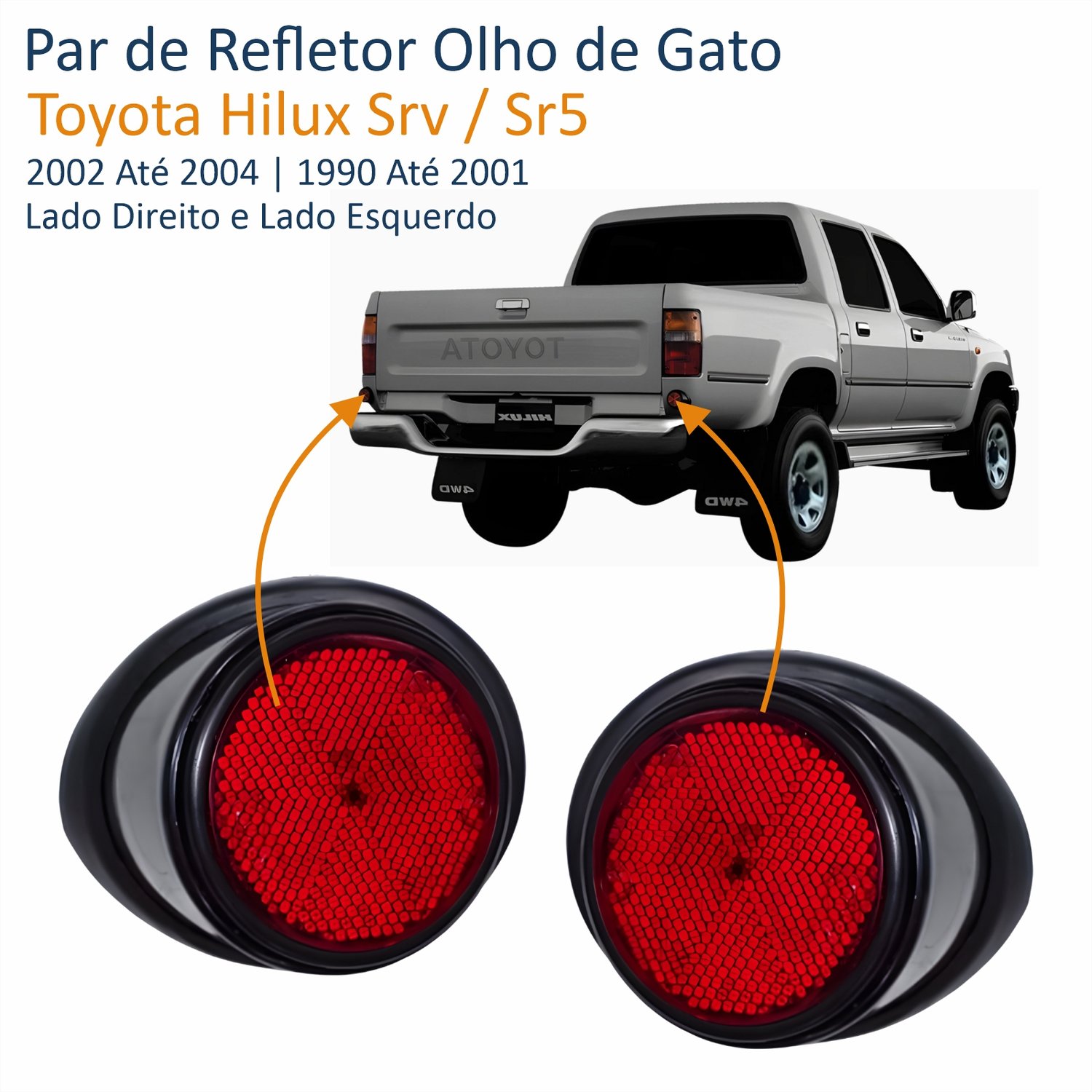 Par Refletor Olho de Gato Toyota Hilux Sr5 1990 Até 2001 Srv 2002 Até 2004