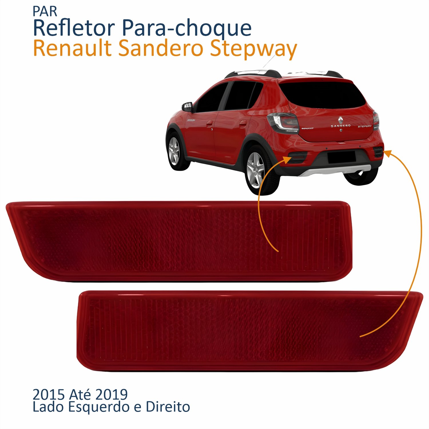 Par Refletor Parachoque Traseiro Renault Sandero Stepway 2015 2016 2017 2018 2019