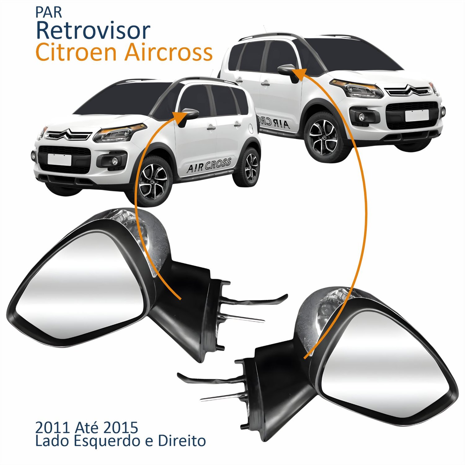 Par Retrovisor Citroen Aircross 2011 2012 2013 2014 2015 Elétrico Capa Cromada Com Sensor De Temperatura