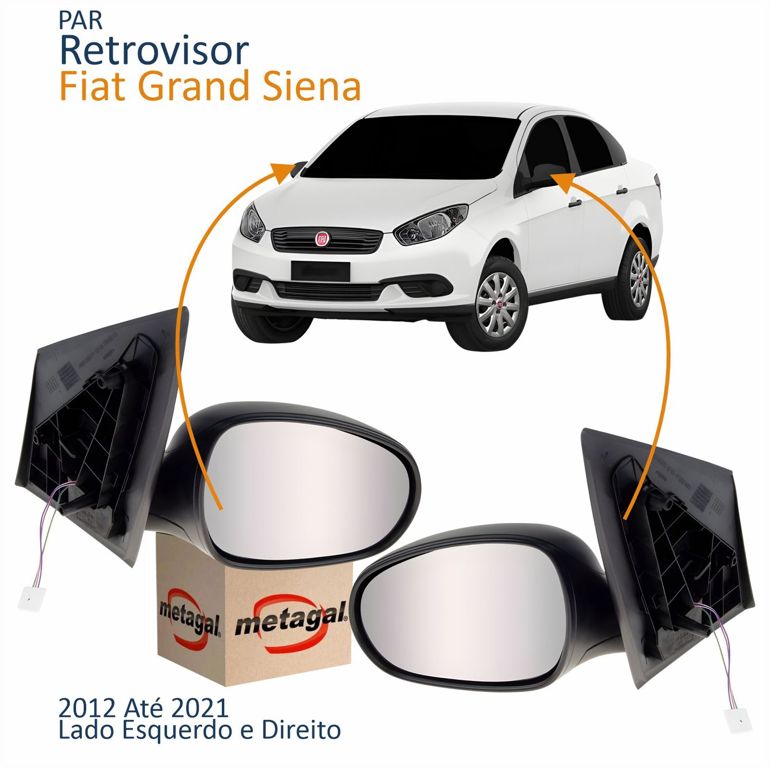 Par Retrovisor Fiat Grand Siena 2012 Até 2021 Elétrico Original