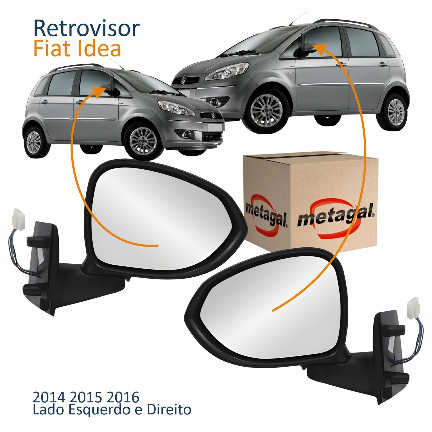 Retrovisor Fiat Idea 2014 2015 2016 Com Pisca Elétrico Lado Esquerdo MotoristaLado: ÚnicoRetrovisor Fiat Idea 2014 2015 2016 Com Pisca Elétrico Lado Direito PassageiroLado: Único