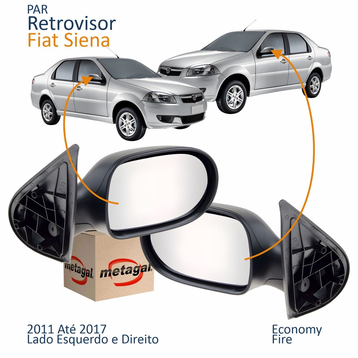Par Retrovisor Fiat Siena Economy Fire 2011 Até 2017 4 Portas Sem Controle Original